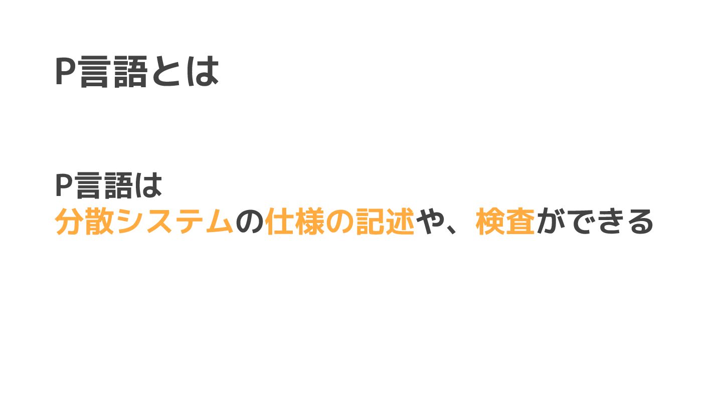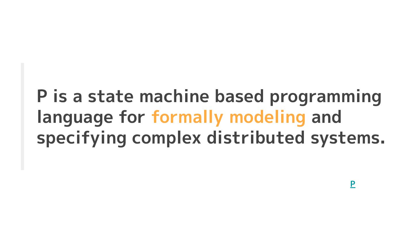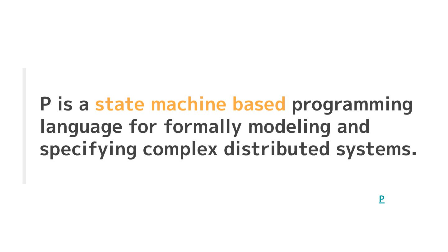 P言語は 分散システムの仕様の記述や、検査ができる P言語とは