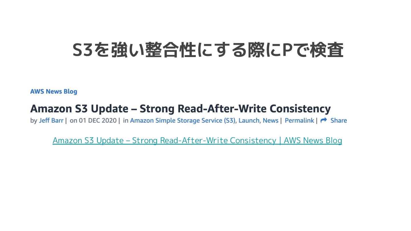 S3を強い整合性にする際にPで検査 Amazon S3 Update – Strong Read-After-Write Consistency | AWS