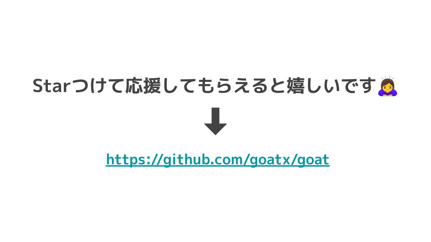 Starつけて応援してもらえると嬉しいです https://github.com/goatx/goat