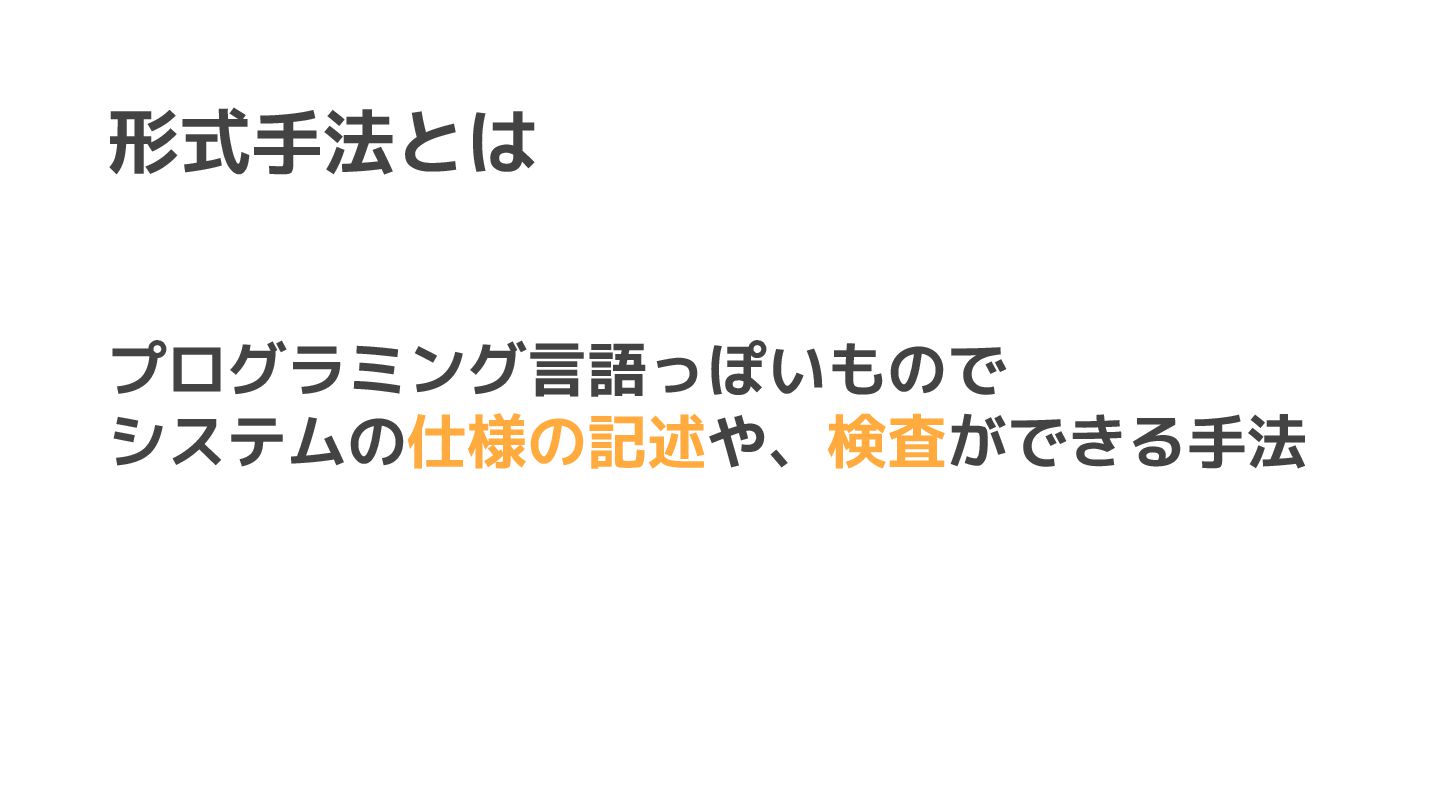 プログラミング言語っぽいもので システムの仕様の記述や、検査ができる手法 形式手法とは