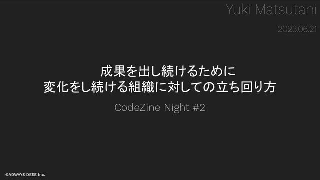 ©ADWAYS DEEE Inc. 成果を出し続けるために 変化をし続ける組織に対しての立ち回り方 Yuki Matsutani 2023.06.21 CodeZine Night