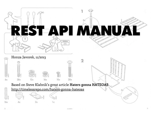 You’re using HTTP to make RPC calls. HTTP is only really used as a tunnel. 2.Resources Rather than making every call to a service endpoint, you have multiple endpoints that are used to represent resources, and you’re talking to them. 3.HTTP verbs You interact with resources using HTTP verbs, rather than always using POST. 4.HATEOAS Hypermedia Controls. HATEOAS. You’re 100% REST compliant. 9/154