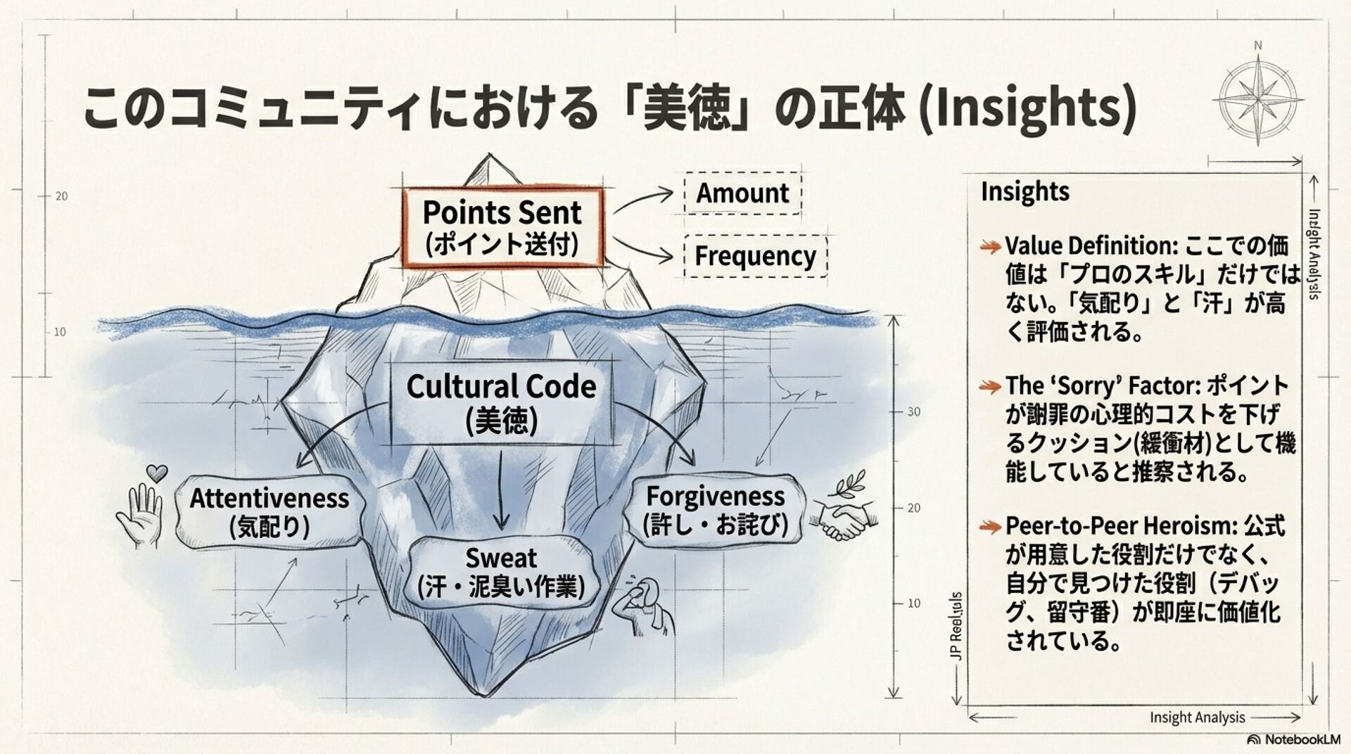 ・美徳の正体:プロのスキルだけでなく、「気配り」や「汗(泥臭い作業)」が高く評価されています。