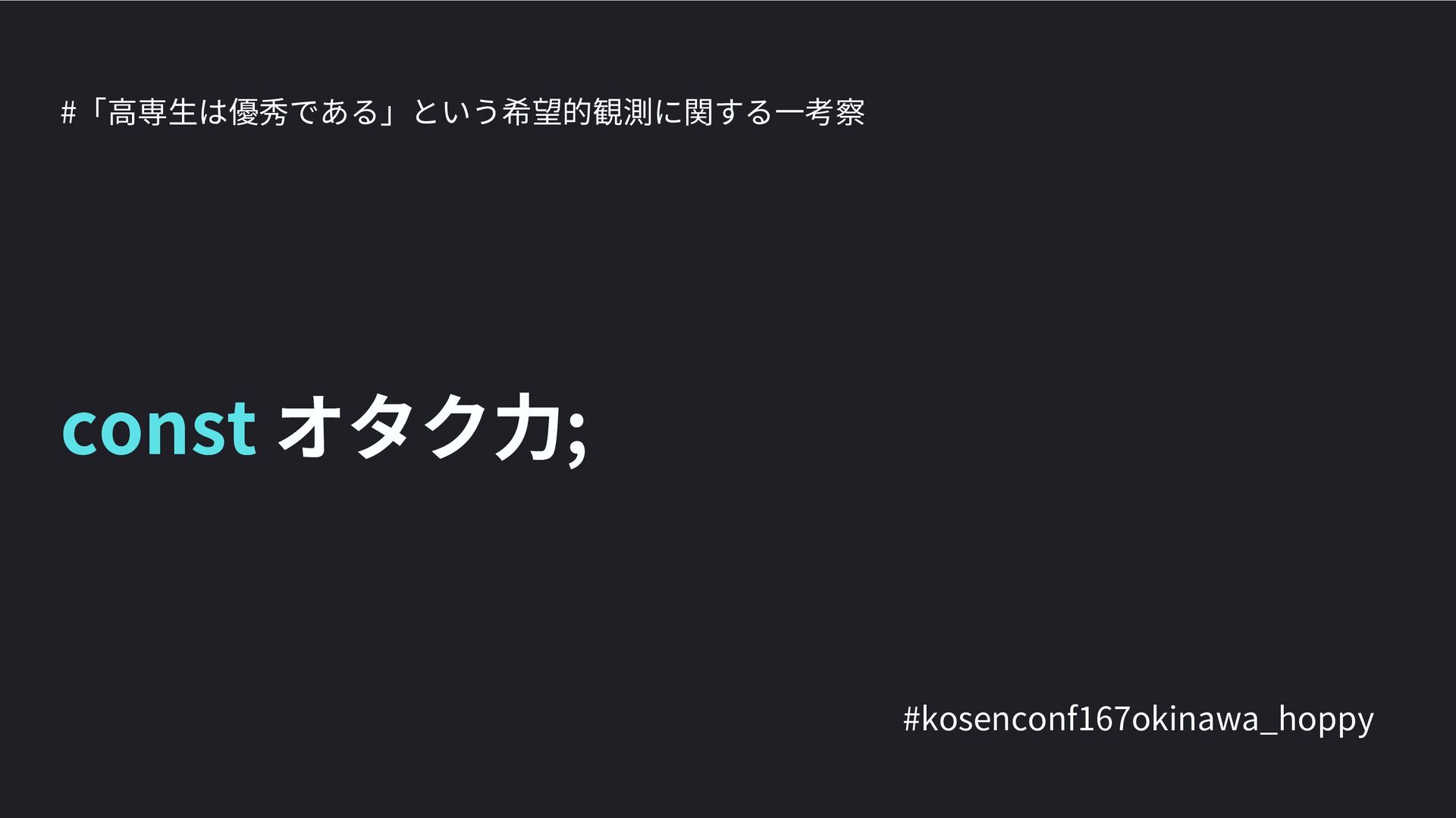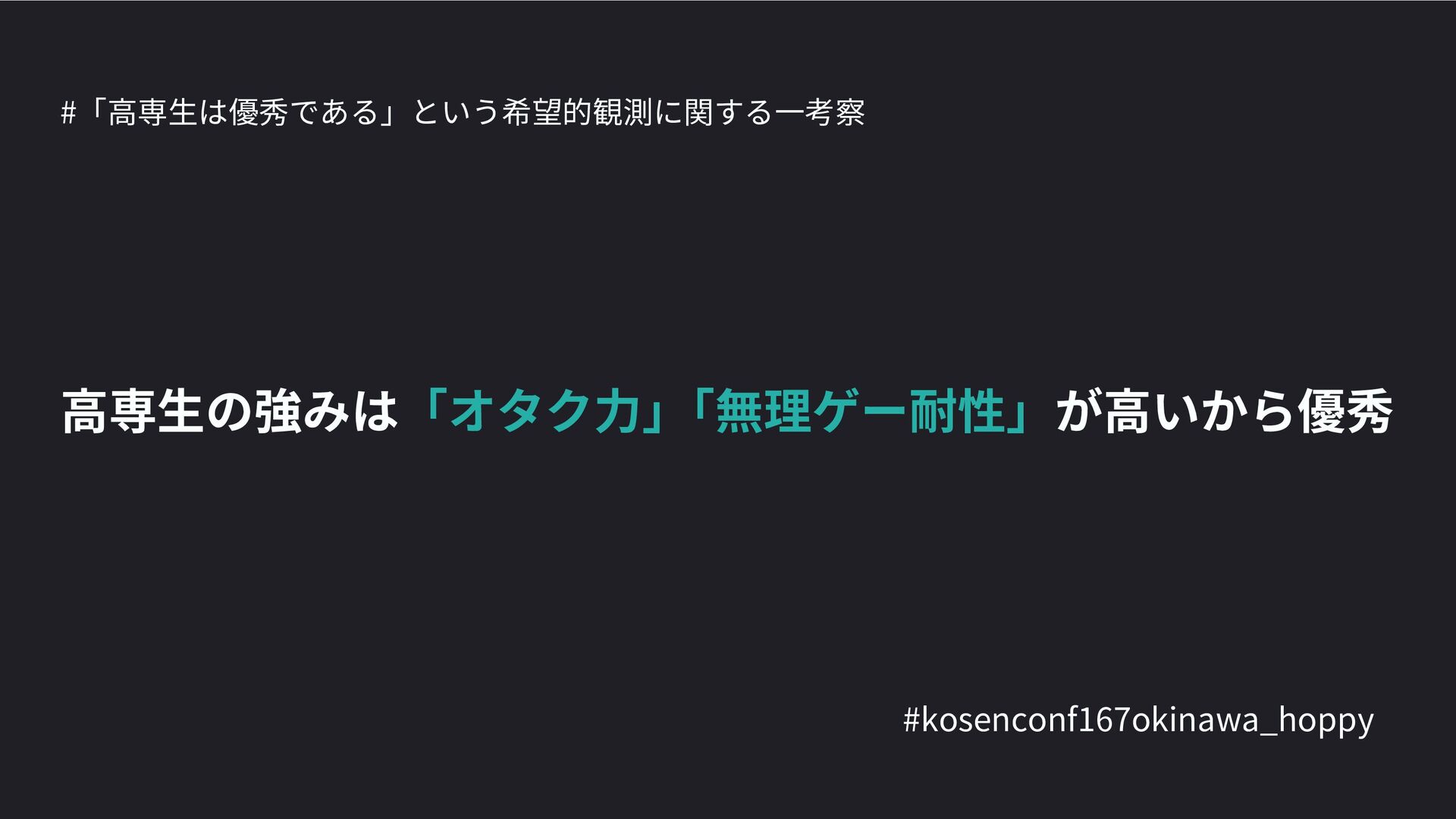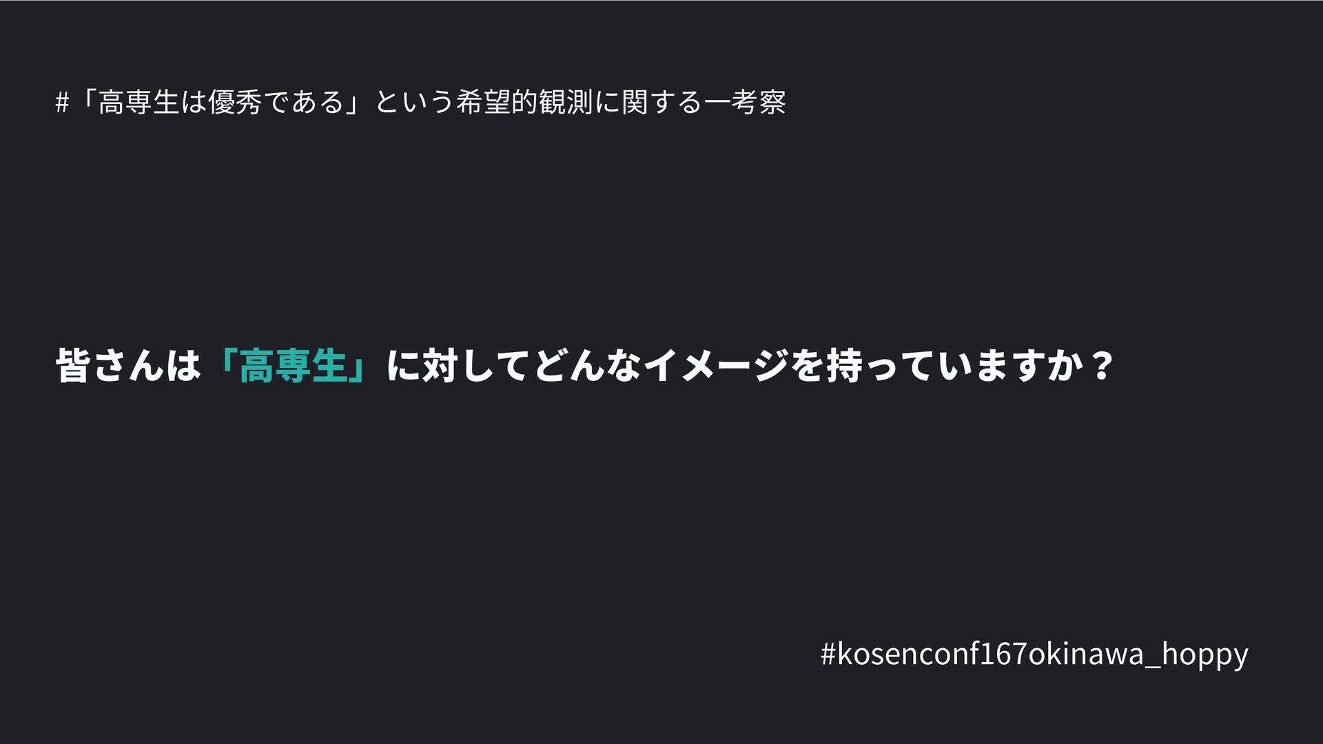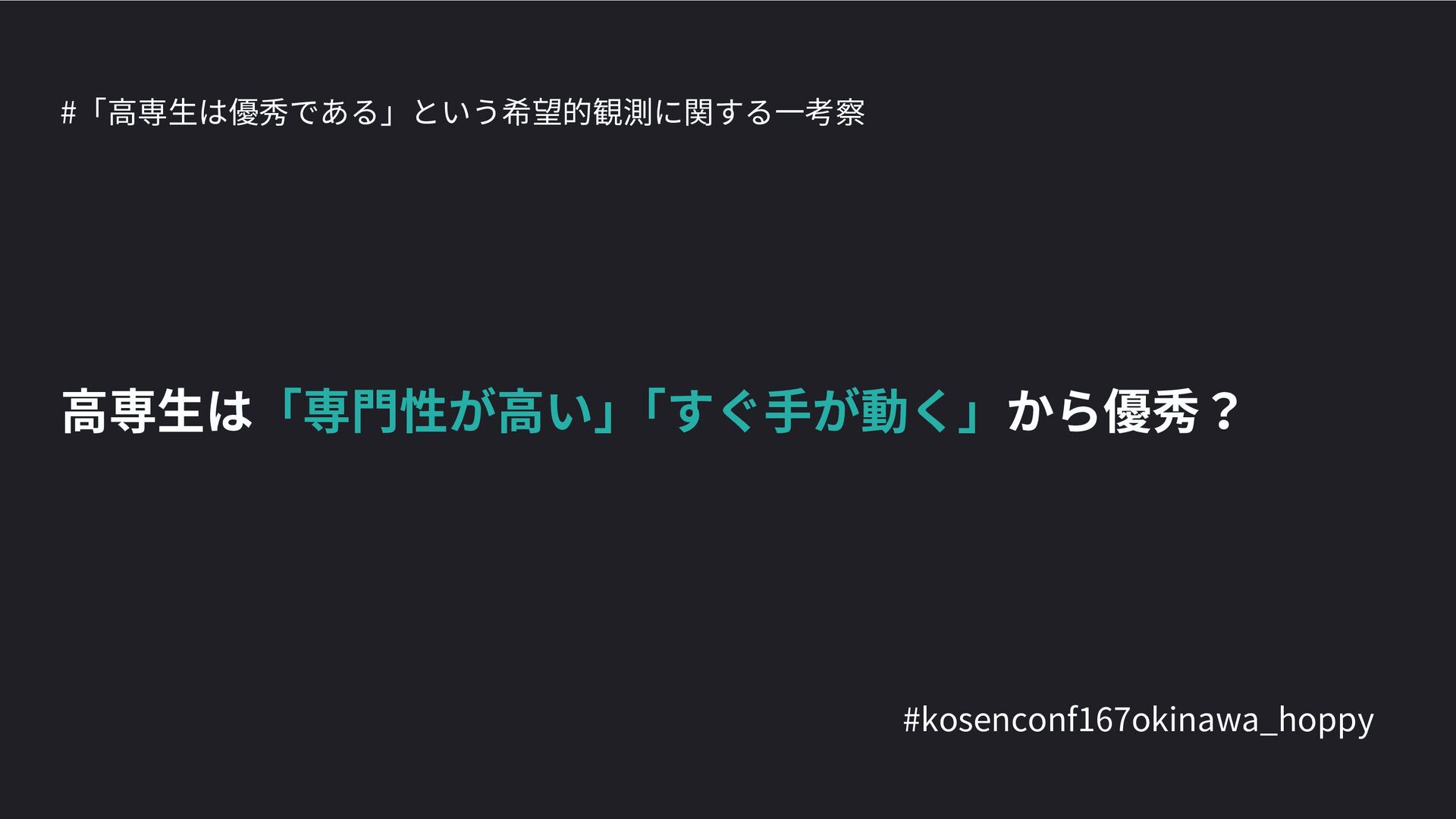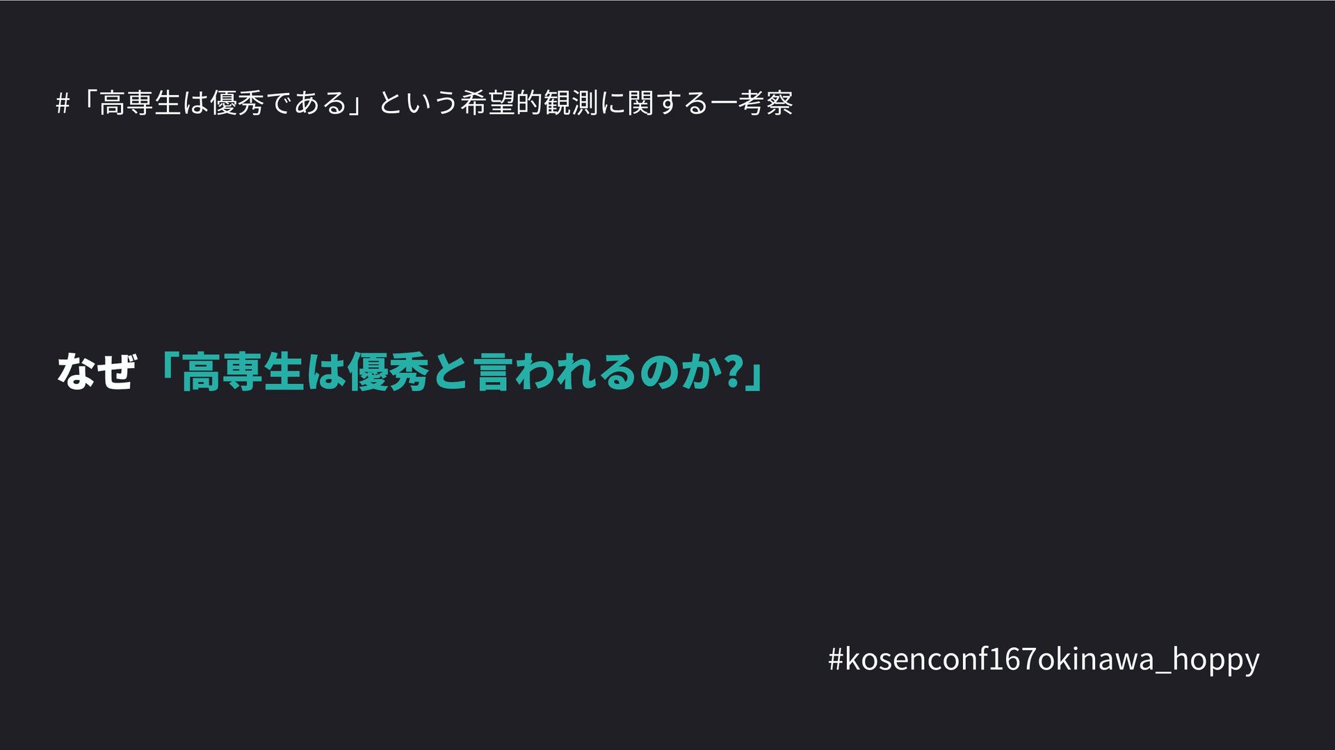 高専カンファレンス167in沖縄2024 にて登壇した際の資料です。 テーマ 高専人(こうせんちゅ)ぬ宝 ~南の島で郷土愛を叫ぶ~ https://connpass.com/event/317340/