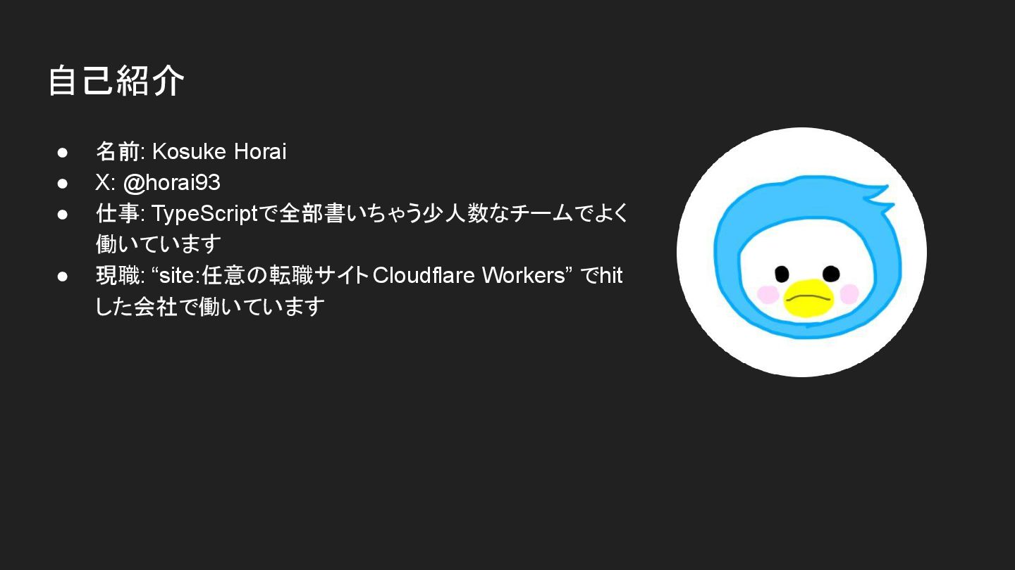自己紹介 • 名前: Kosuke Horai • X: @horai93 • 仕事: