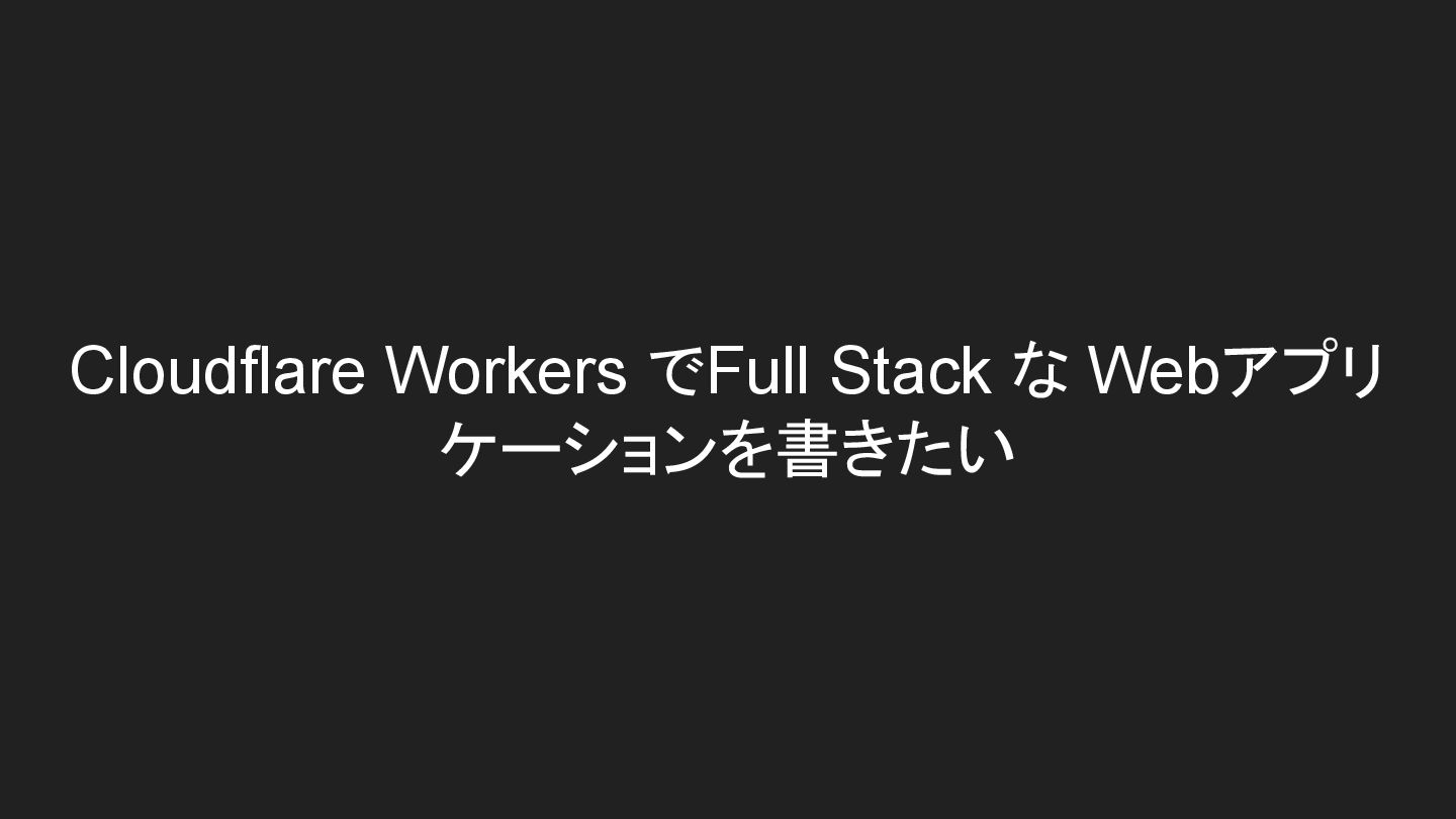 話すこと 1. Cloudflare Workers でFull Stack な Webアプリケーションを書きたい 2. Cloudflare