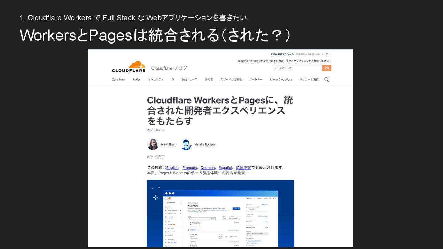 WorkersとPagesは統合される(された?) 1. Cloudflare Workers で Full Stack な Webアプリケーションを書きたい