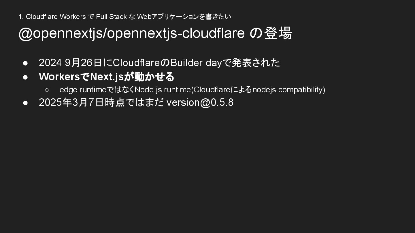 @opennextjs/opennextjs-cloudflare の課題 • (再掲)2025年3月7日時点ではまだ