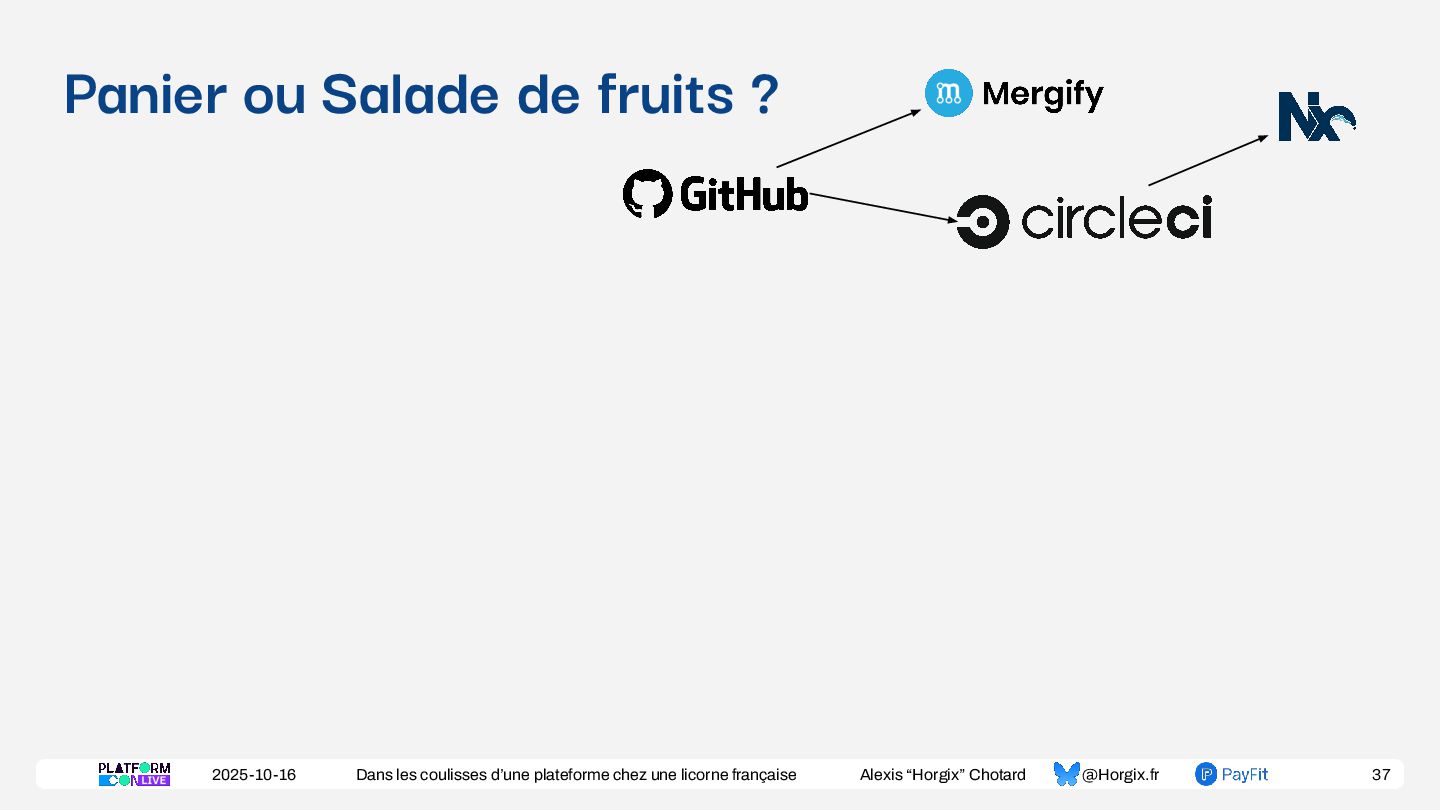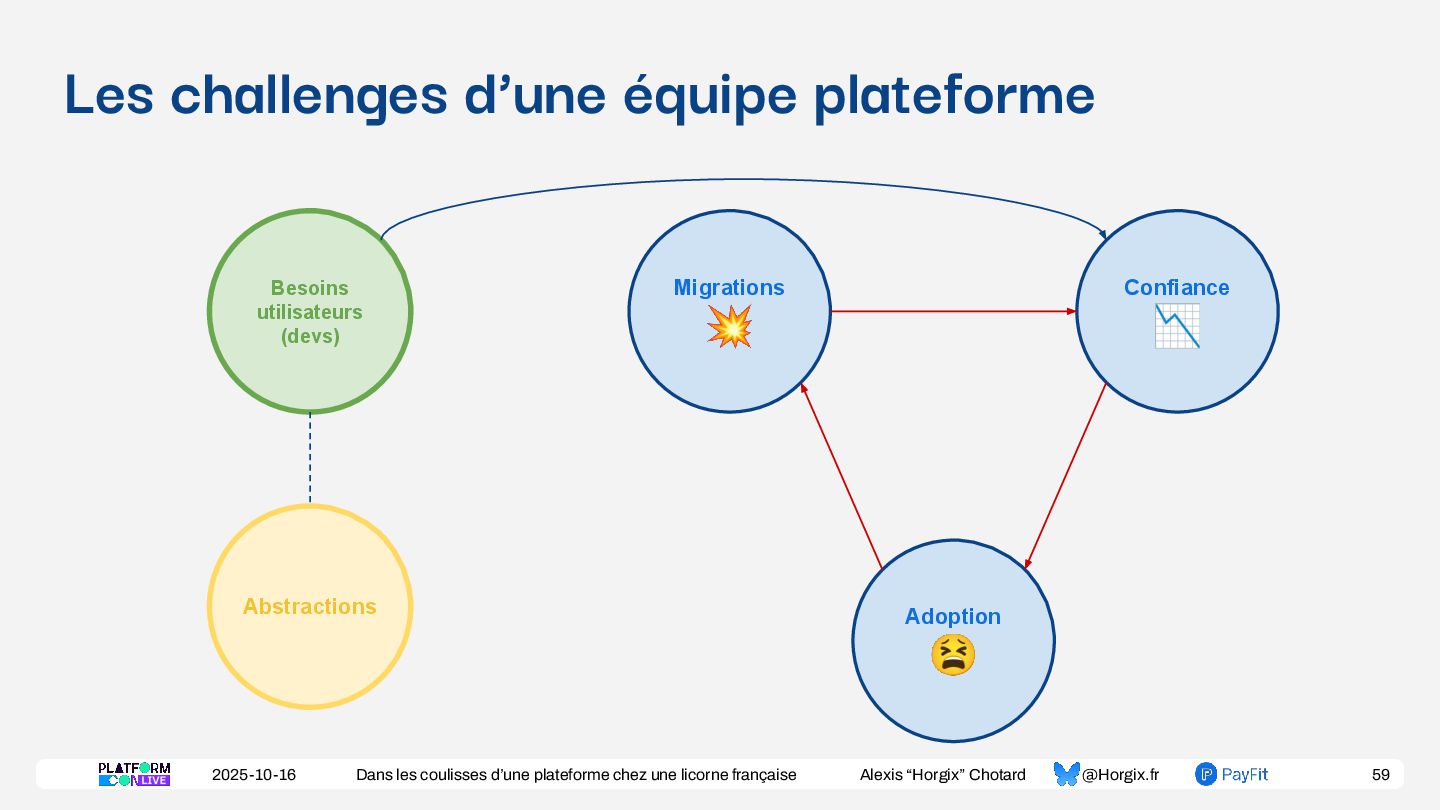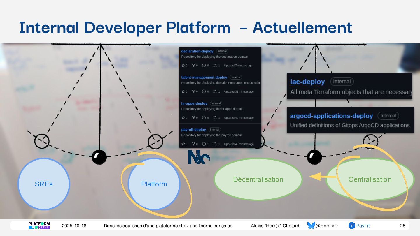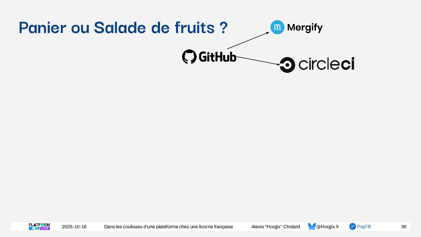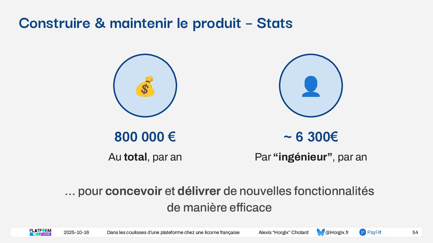 Ceci est le deck de slides d'un talk (30min) présenté à la conférence PlatformCon Live en octobre 2025 à Paris par Alexis "Horgix" Chotard au sujet de la plateforme (dévelopeurs) interne de PayFit.