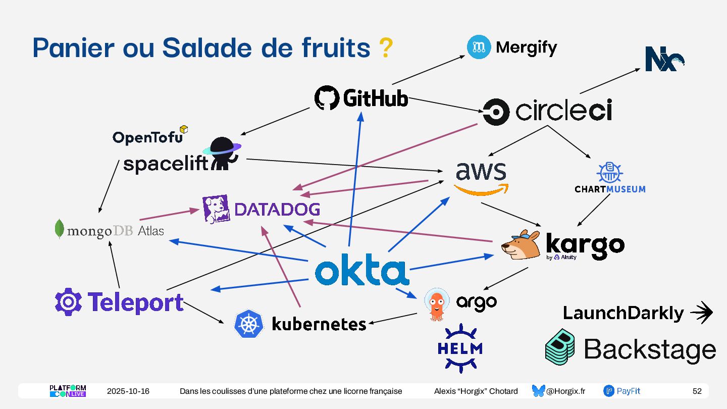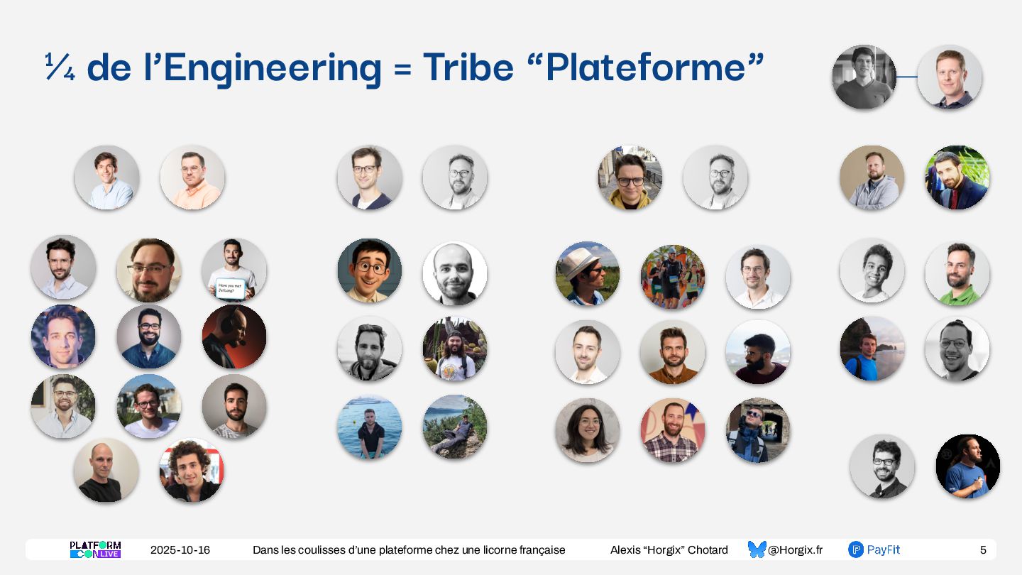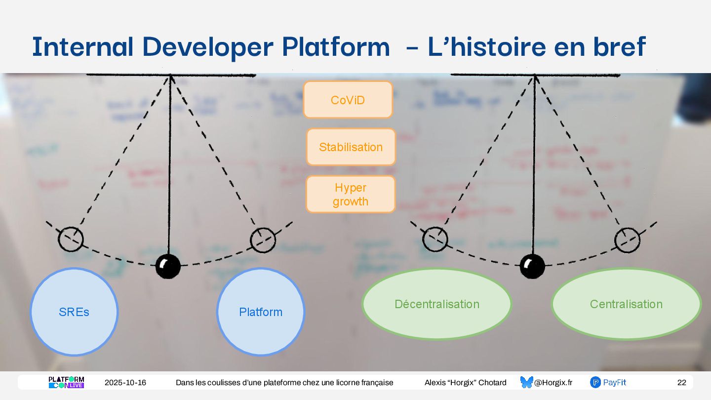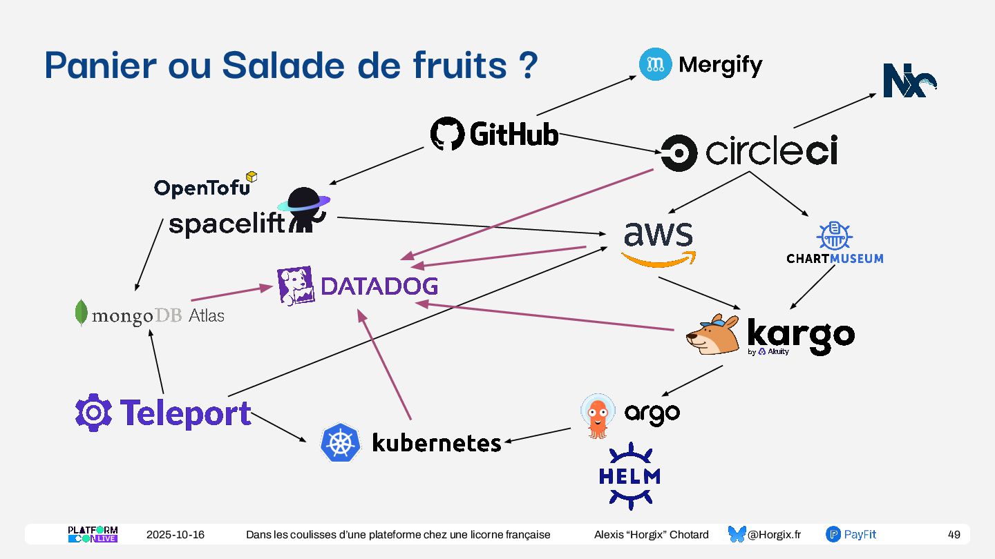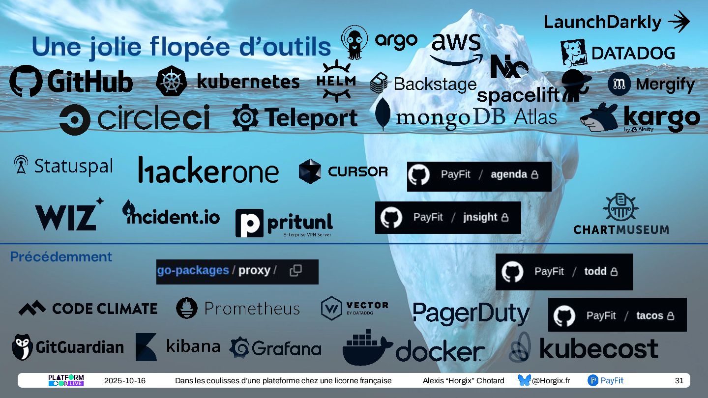 Ceci est le deck de slides d'un talk (30min) présenté à la conférence PlatformCon Live en octobre 2025 à Paris par Alexis "Horgix" Chotard au sujet de la plateforme (dévelopeurs) interne de PayFit.