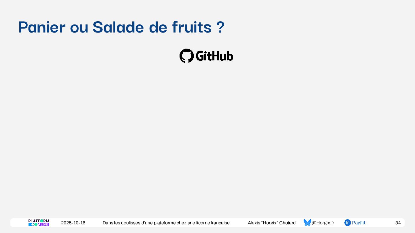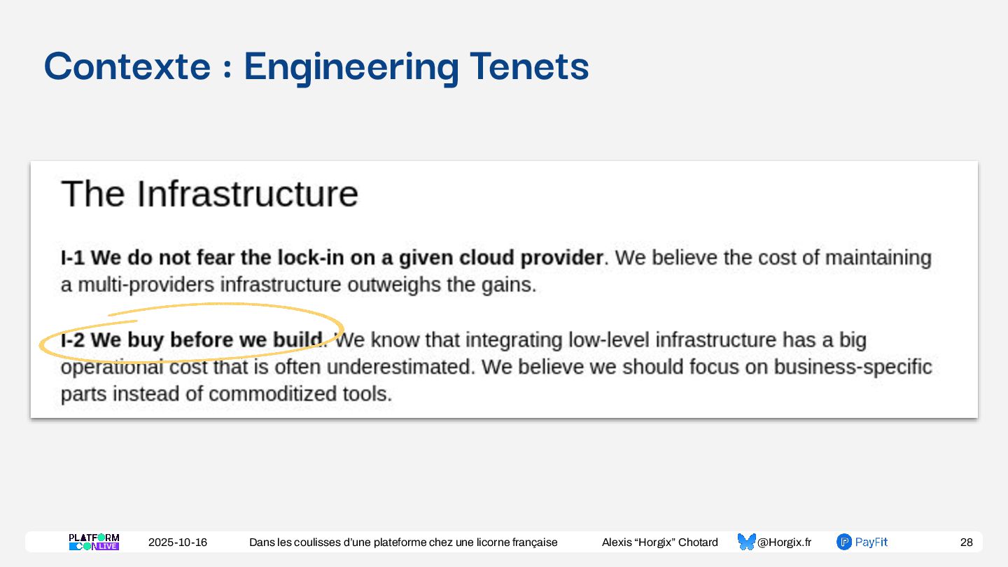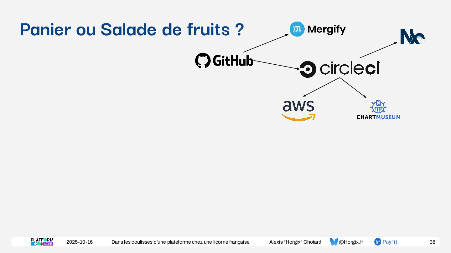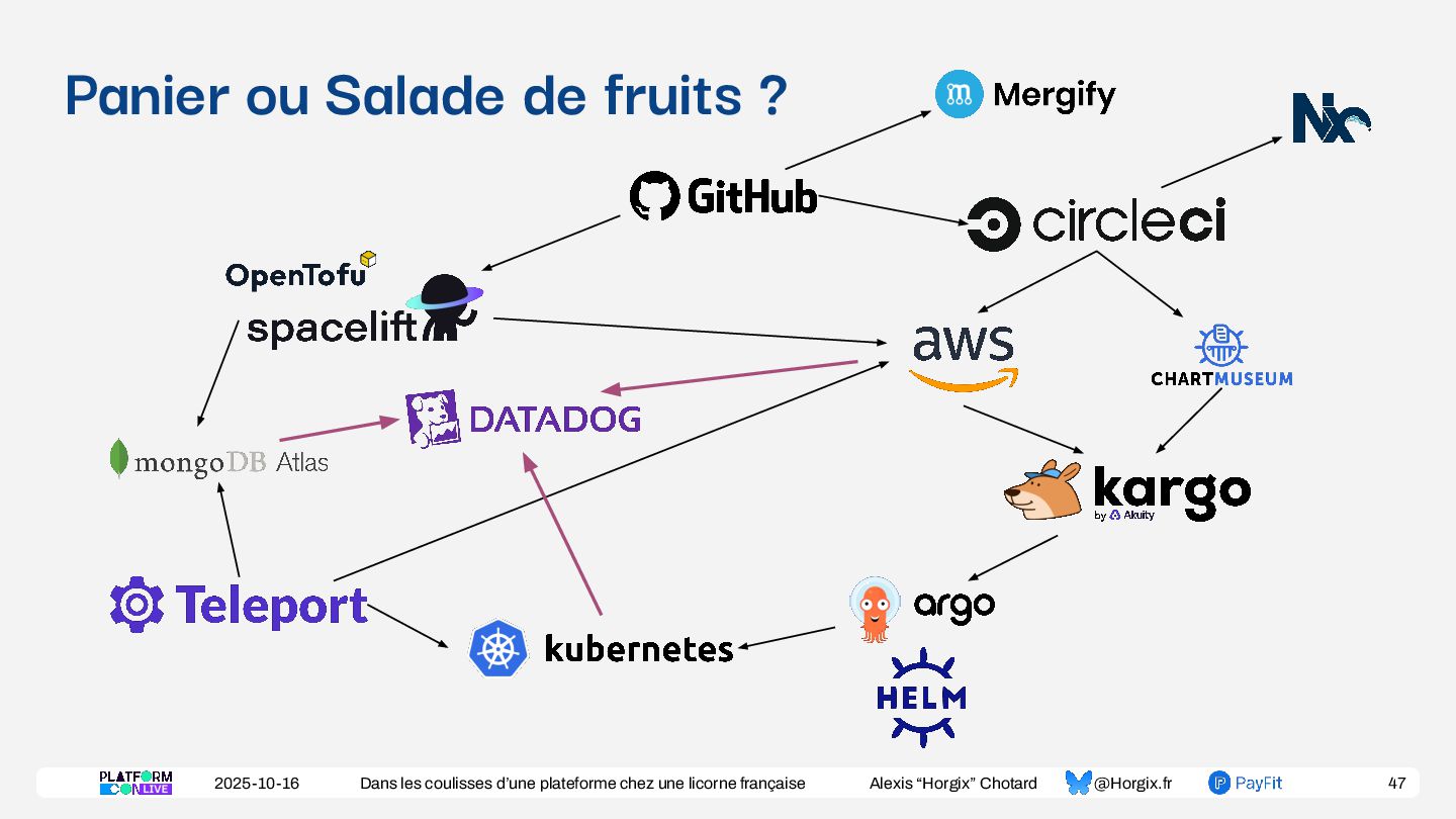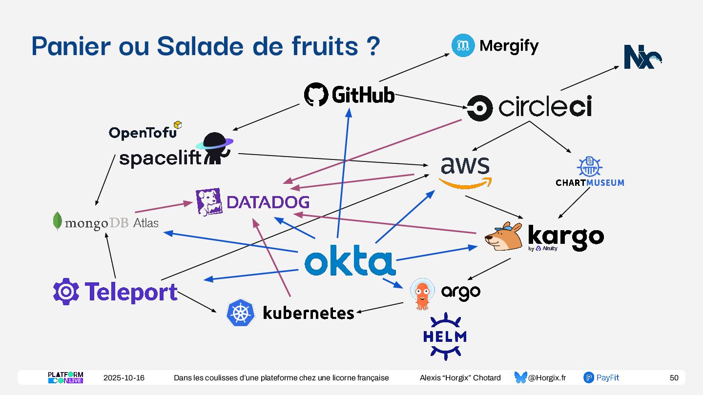 Ceci est le deck de slides d'un talk (30min) présenté à la conférence PlatformCon Live en octobre 2025 à Paris par Alexis "Horgix" Chotard au sujet de la plateforme (dévelopeurs) interne de PayFit.