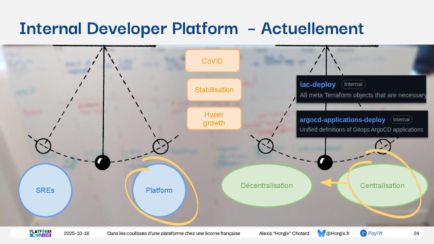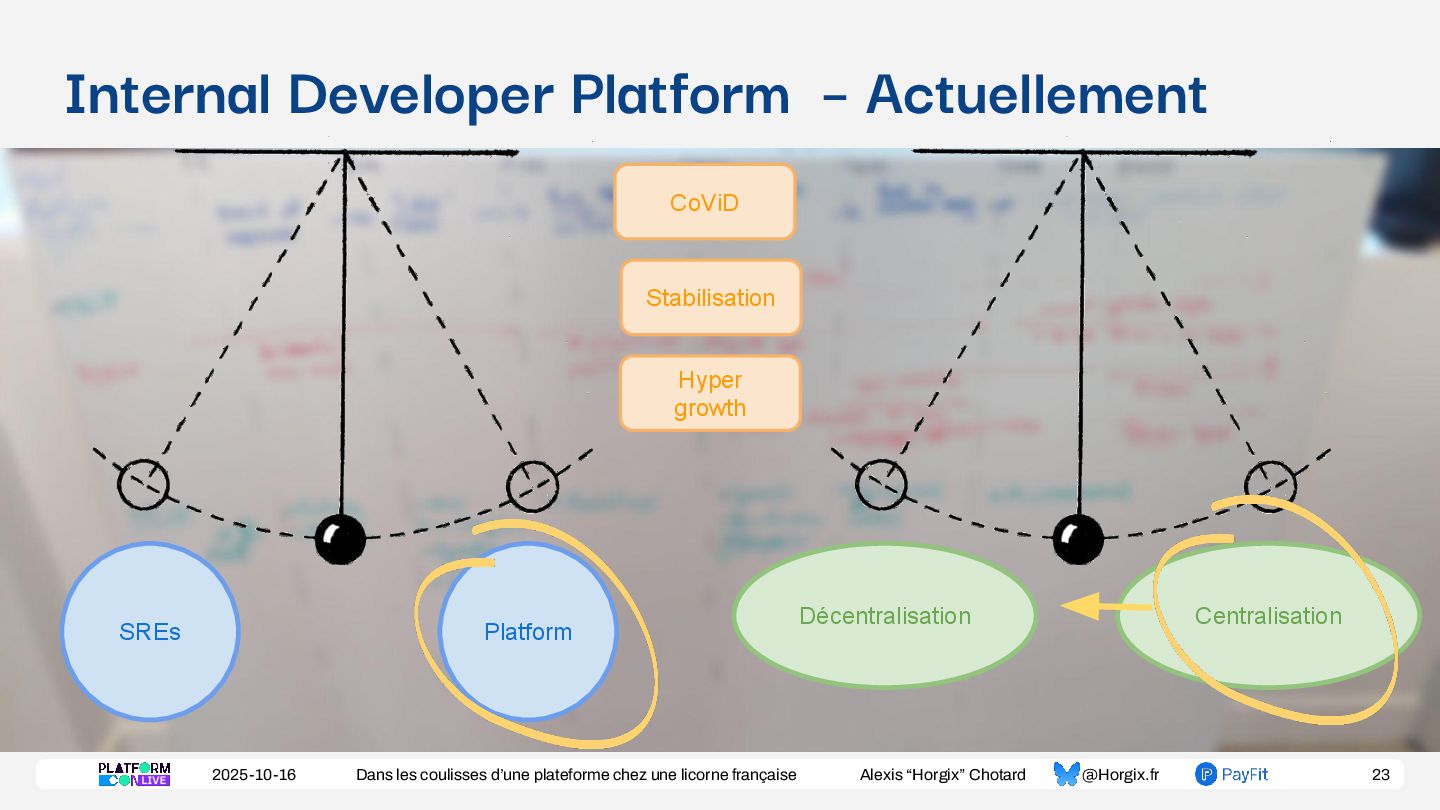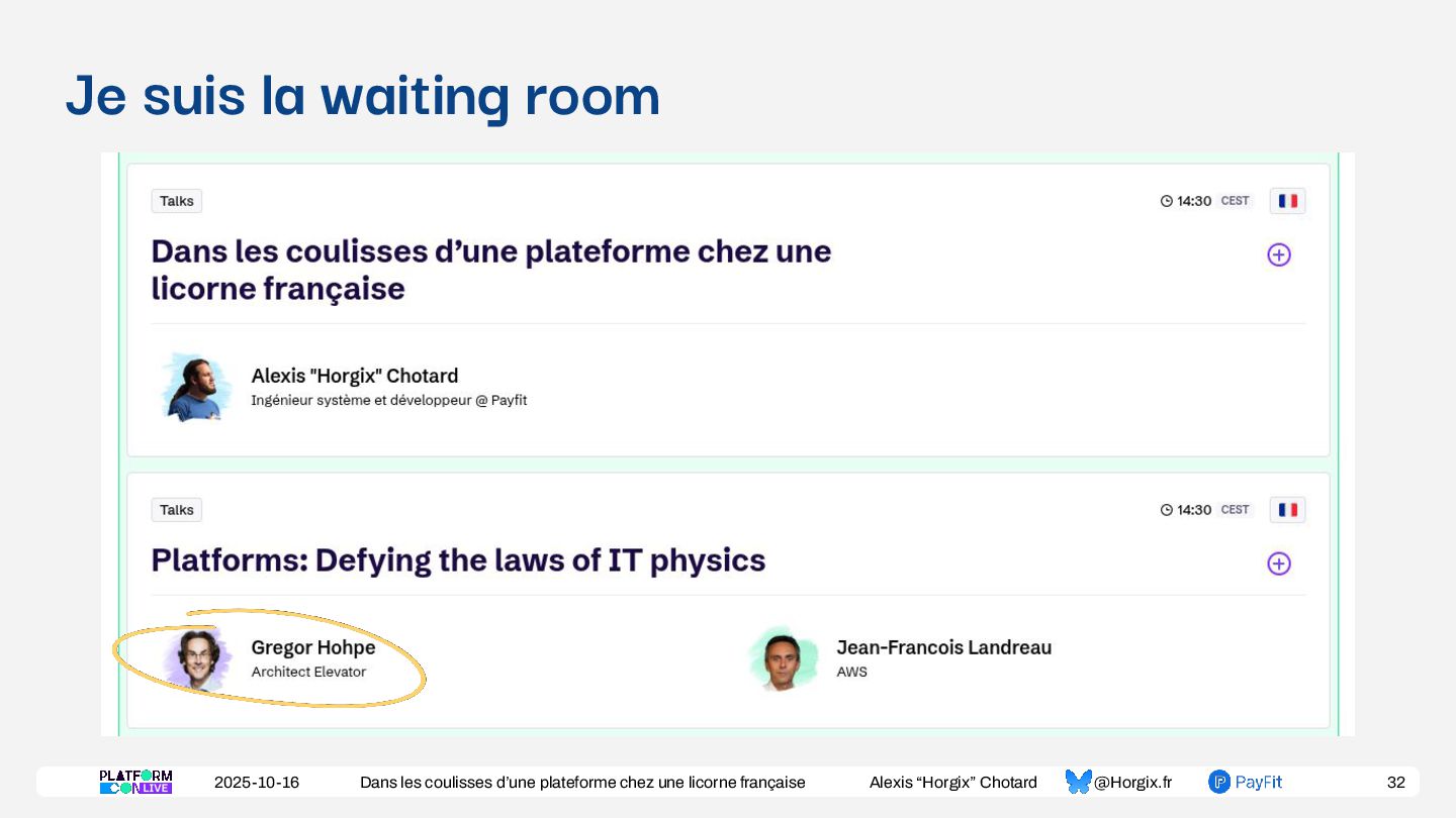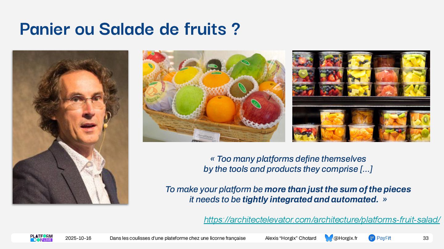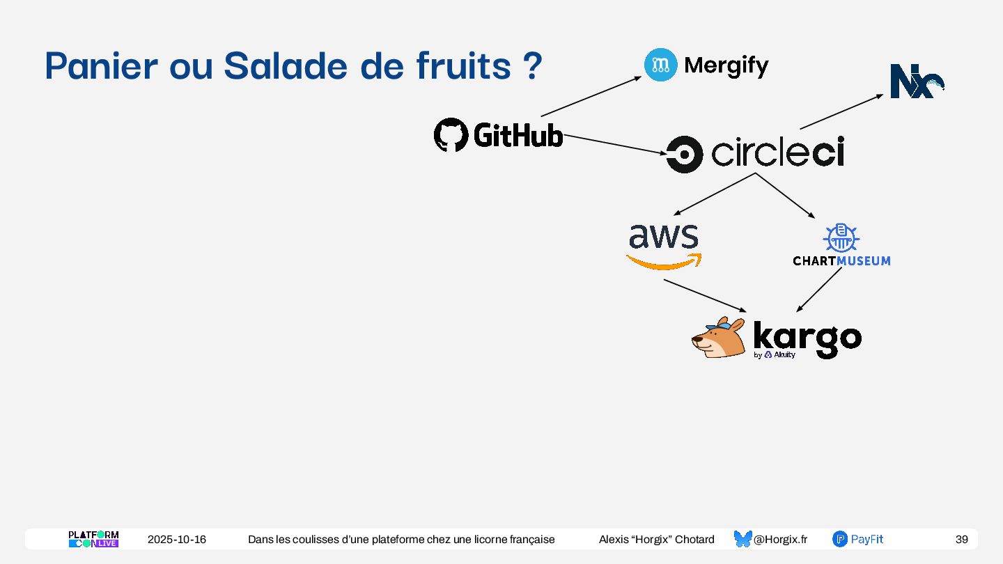 Ceci est le deck de slides d'un talk (30min) présenté à la conférence PlatformCon Live en octobre 2025 à Paris par Alexis "Horgix" Chotard au sujet de la plateforme (dévelopeurs) interne de PayFit.