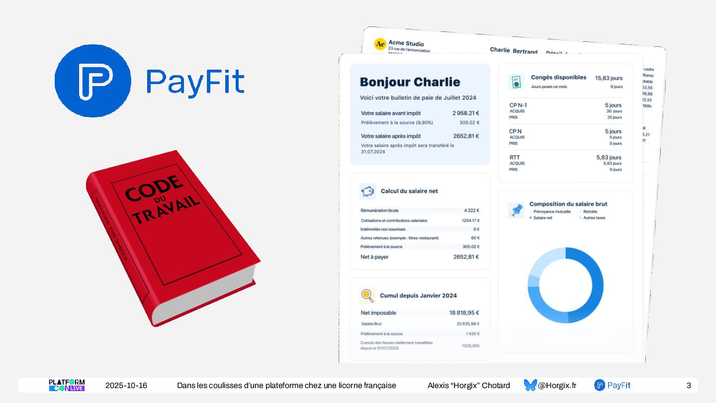 This is the slide deck of a talk (30min) presented at the PlatformCon Live conference in October 2025 in Paris by Alexis "Horgix" Chotard about the internal (developer) platform of PayFit.