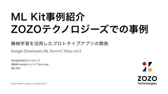 Developers ML Summit Tokyo vol 2 גࣜձࣾ;0;0ςΫϊϩδʔζ ։ൃ෦"OESPJEΤϯδχΞ5FDI-FBE ງߐ྄հ .-,JUࣄྫհ ;0;0ςΫϊϩδʔζͰͷࣄྫ