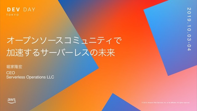 rights reserved. T O K Y O 2 0 1 9 . 1 0 . 0 3 - 0 4 ΦʔϓϯιʔείϛϡχςΟͰ Ճ͢ΔαʔόʔϨεͷະདྷ ງՈོ CEO Serverless Operations LLC
