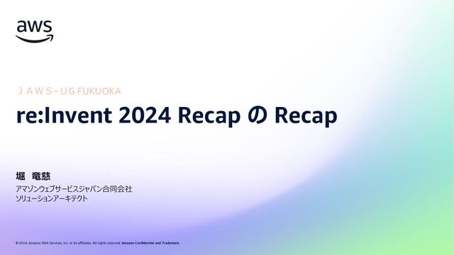 rights reserved. Amazon Confidential and Trademark. • Amazon S3 Tables 表形式データの格納に最適化された新しいバケットタイプを導⼊。 Apache Iceberg の⾼度な 分析機能を活⽤可能に。セルフマネージド型のテーブルと⽐較してクエリスループットが最⼤ 3 倍⾼速に。秒間トランザクション数が最⼤ 10 倍に向上する • Amazon S3 Metadata オブジェクトがアップロードされると⾃動的にメタデータを取得し、Amazon S3 Tables に格納。 ビジネス分析やリアルタイム推論アプリケーションが、素早く S3 に格納されたデータを識別・利⽤ できるようになる § AWS Glue を介して Amazon Data Firehose, Athena, Redshift, EMR, QuickSight な どとも連携可能 26 Apache Iceberg のテーブルを標準でサポートする最初のクラウドベースオブジェクトストレージ Amazon S3 Tables と S3 Metadata を発表 https://aws.amazon.com/about-aws/whats-new/2024/12/amazon-s3-tables-apache-iceberg-tables-analytics-workloads/ https://aws.amazon.com/about-aws/whats-new/2024/12/amazon-s3-metadata-preview/ ※Amazon S3 Tables は東京リージョン対応のアップデートだよ。