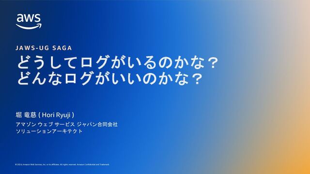 rights reserved. ログの構造化によるクエリの差 35 fields @timestamp, @message | filter user = ”ryuji.hori" and action = "login" and status = "success" | stats count() as login_success_count { "timestamp": "2024-08-03T12:00:00Z", "user": "ryuji.hori", "action": "login", "status": "success” } 非構造化ログ 構造化されたログ 2024-08-03T12:00:00Z ryuji.hori performed login action with status success クエリ クエリ fields @timestamp, @message | parse @message " * * performed * action with status *" as user, action, status | filter user = ”ryuji.hori" and action = "login" and status = "success” | stats count() as login_success_count ⽣成AIでクエリを⾃動⽣成も・・ハンズオンでどうぞ CloudWatch Logs Insights