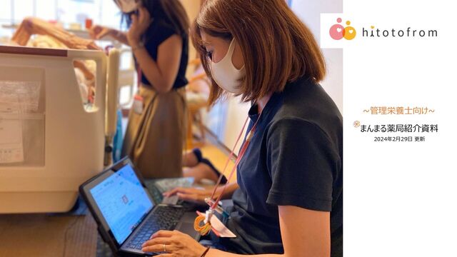 1,688回/⽉ CF上板橋 366回/⽉ 310回/⽉ ⿇薬対応患者 314 ⼈ 処⽅箋単価 平均 19,309 円 新規依頼件数 平均 83.0 ⼈/⽉ 担当者会議 1~2 回/⽉ 訪問栄養実績 21 ⼈ 処⽅箋枚数 約 20,000 枚 取り扱い品⽬数 3,101 品⽬ 処⽅箋 集中率 27 % ※クリニックと連携 ※直近3ヶ⽉平均 ※24.1⽉末(⼊院中患者含む) ※23.1~24.1⽉累計 ※24.1⽉末 CF上板橋 ※23.1~24.1⽉平均 LSB吉祥寺 RWG⻘砥 ※23.1~24.1⽉平均 CF上板橋 80% 11% 9% 居宅 緊急 その他医療保険 ※23.1~24.1⽉の最多⽉ ※24.1⽉末 ※23.1~24.1⽉平均 CF上板橋