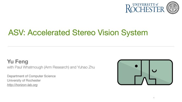 1 ASV: Accelerated Stereo Vision System Yu Feng with Paul