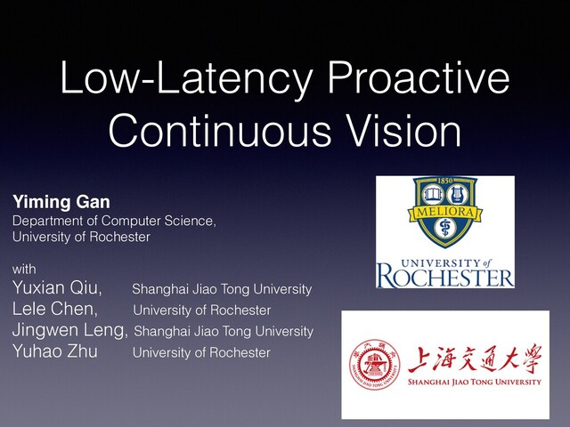 University of Rochester with Yuxian Qiu, Shanghai Jiao Tong University Lele Chen, University of Rochester Jingwen Leng, Shanghai Jiao Tong University Yuhao Zhu University of Rochester