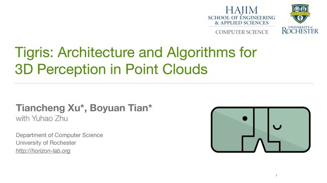 Point Clouds Tiancheng Xu*, Boyuan Tian* with Yuhao Zhu Department of Computer Science University of Rochester http://horizon-lab.org