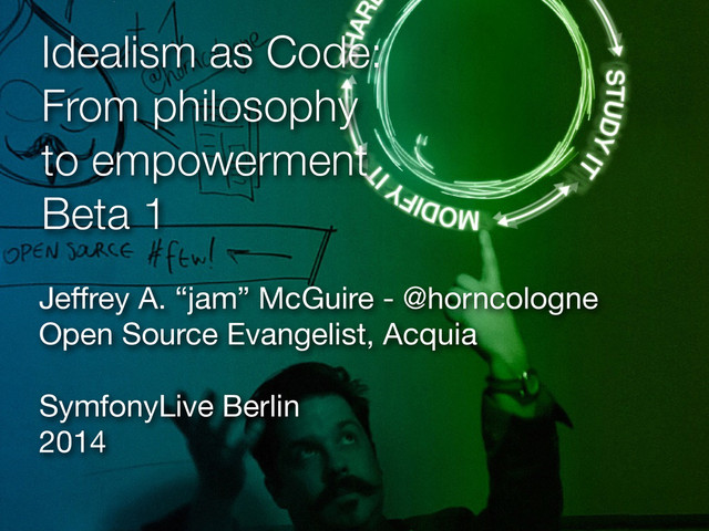 As part of the LAMP stack, PHP is a dominant web technology and it is getting more powerful all the time: Convergence through things like Composer and the PSR standards is bringing once disparate communities together. Multiple “meta projects” like Drupal are adopting code from around the PHP and FOSS spheres. Contribution to one has become contribution to whole ecosystems. Many of us are idealists. Powering 80% of the web, we have the chance – and perhaps the responsibility – to make a difference through PHP. I will talk about how the thinking of RMS and other pioneers became code and how that code is empowering people and organisations. I want to draw a few lines from the very definition of free and open source software, through its practical application and native advantages, to how it helps people do better business, better government … and I’m hoping … make a better world.