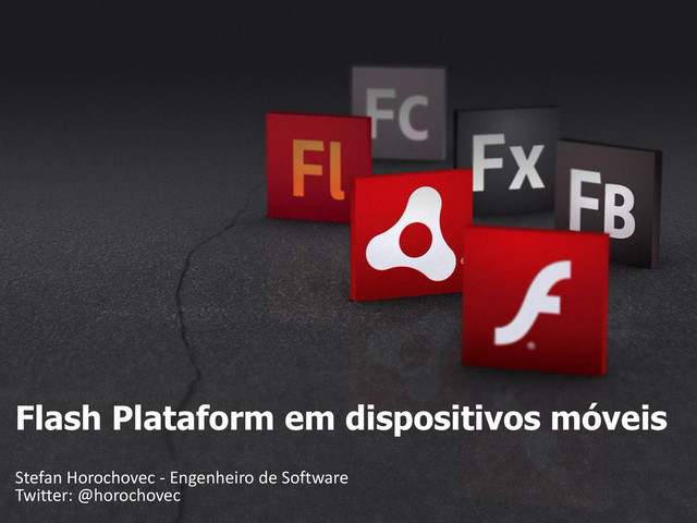 – Avanti Prima Engenharia; • Instrutor: Adobe Flex e Java – RIACycle; • Instrutor: Android – RIACycle; • Autor: O’Reilly; • Espec. em Eng. de Software e Gestão de Projetos; • Membro da pre-release da Adobe; • Fundador AUG FlexDuck; • Moderador: Flex-Brasil e AIR-Brasil; • Blog: http://www.horochovec.com.br • Twitter: http://twitter.com/horochovec
