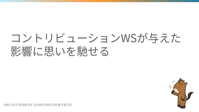 JAWS-UG CDK支部 #18イベントの登壇資料です。2024年の振り返りとして、AWS CDK Conference Japan 2024のCDKコントリビューションワークショップの内容をもとに振り返りをしました。
