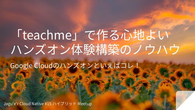 「teachme」で作る⼼地よい ハンズオン体験構築のノウハウ Google Cloudのハンズオンといえばコレ! Jagu'e'r Cloud Native #15 ハイブリッド Meetup