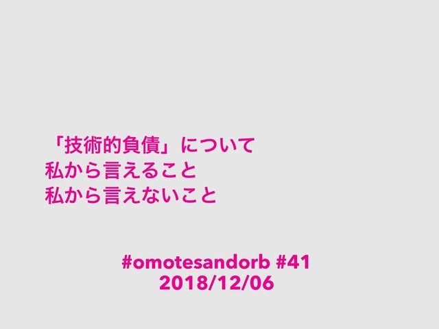 omotesando.rb #41のテーマである「技術的負債」について喋ります。