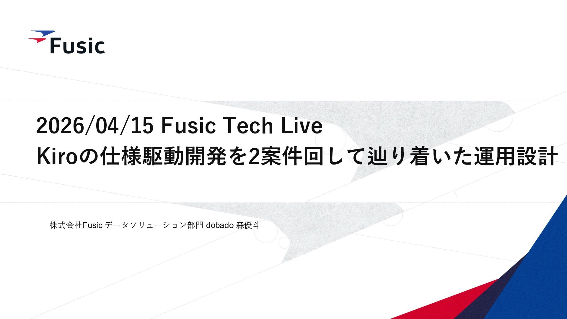 ©Fusic Co., Ltd. 0 2026/04/15 Fusic Tech Live Kiroの仕様駆動開発を2案件回して辿り着いた運用設計 株式会社Fusic