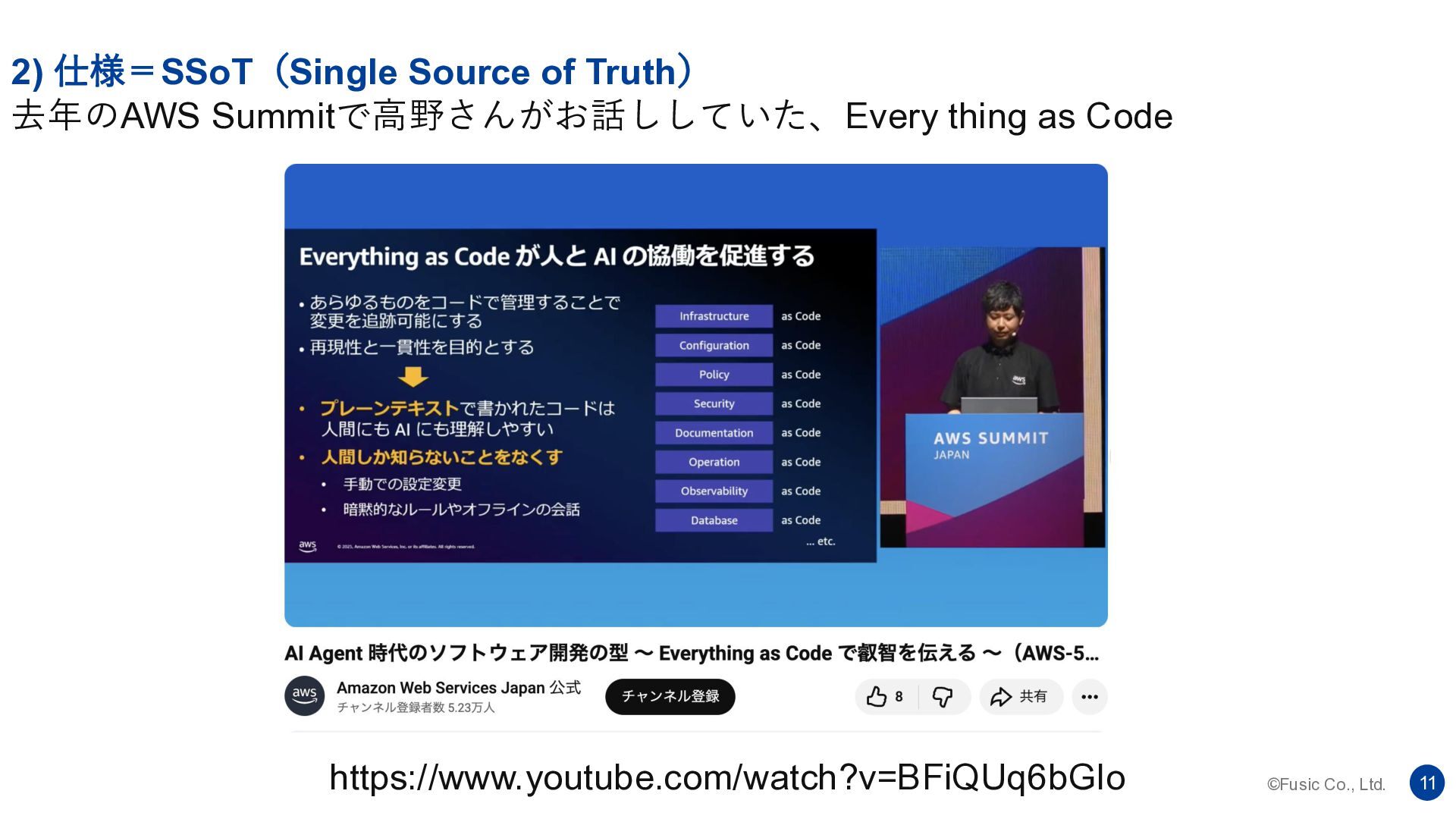 ©Fusic Co., Ltd. 11 2) 仕様=SSoT(Single Source of Truth) 去年のAWS