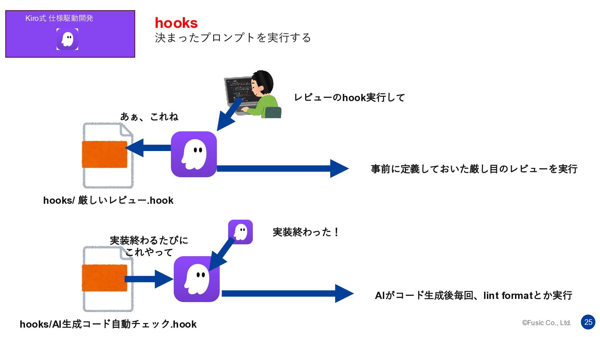 ©Fusic Co., Ltd. 25 Kiro式 仕様駆動開発 hooks 決まったプロンプトを実行する hooks/AI生成コード自動チェック.hook hooks/