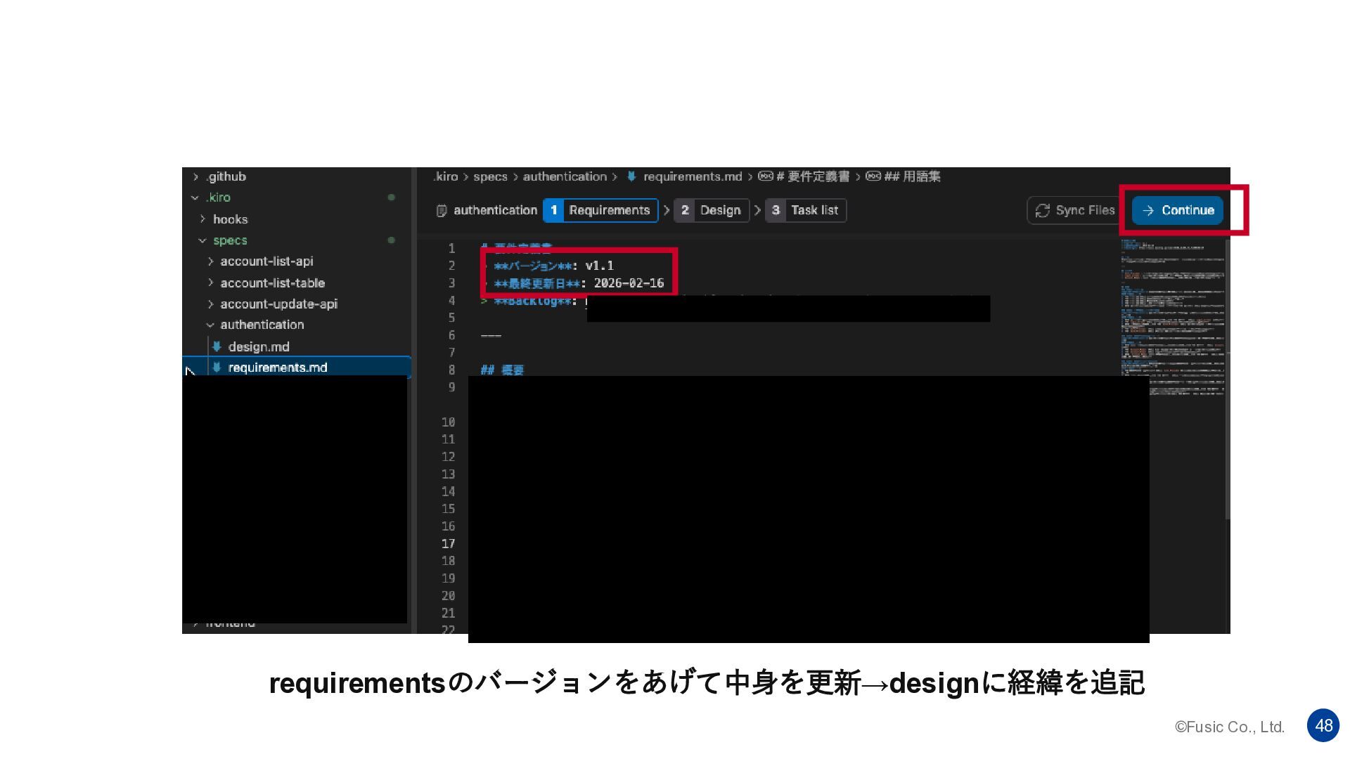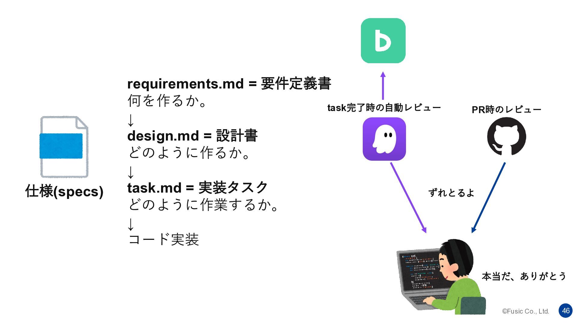 ©Fusic Co., Ltd. 45 requirements.md = 要件定義書 何を作るか。 ↓ design.md