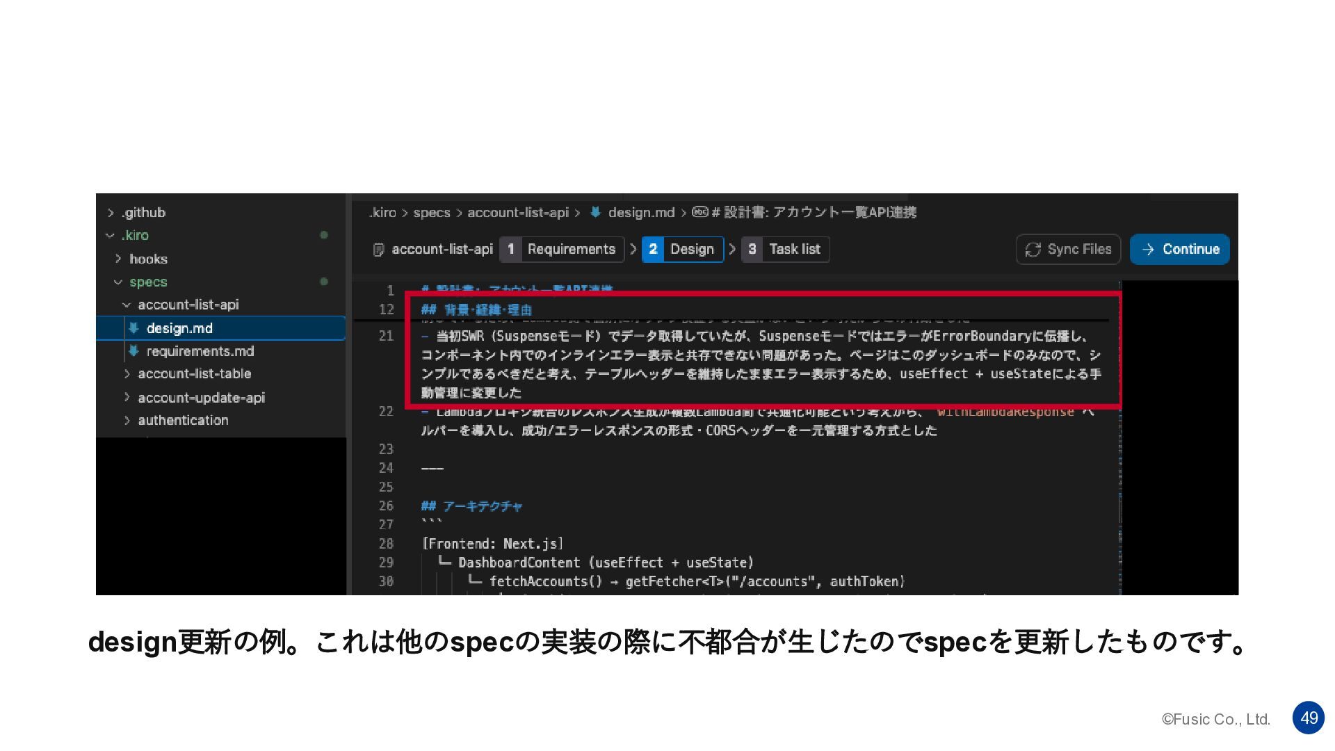 ©Fusic Co., Ltd. 49 design更新の例。これは他のspecの実装の際に不都合が生じたのでspecを更新したものです。
