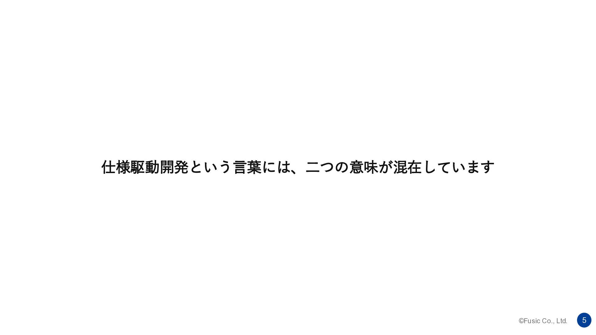 ©Fusic Co., Ltd. 5 仕様駆動開発という言葉には、二つの意味が混在しています
