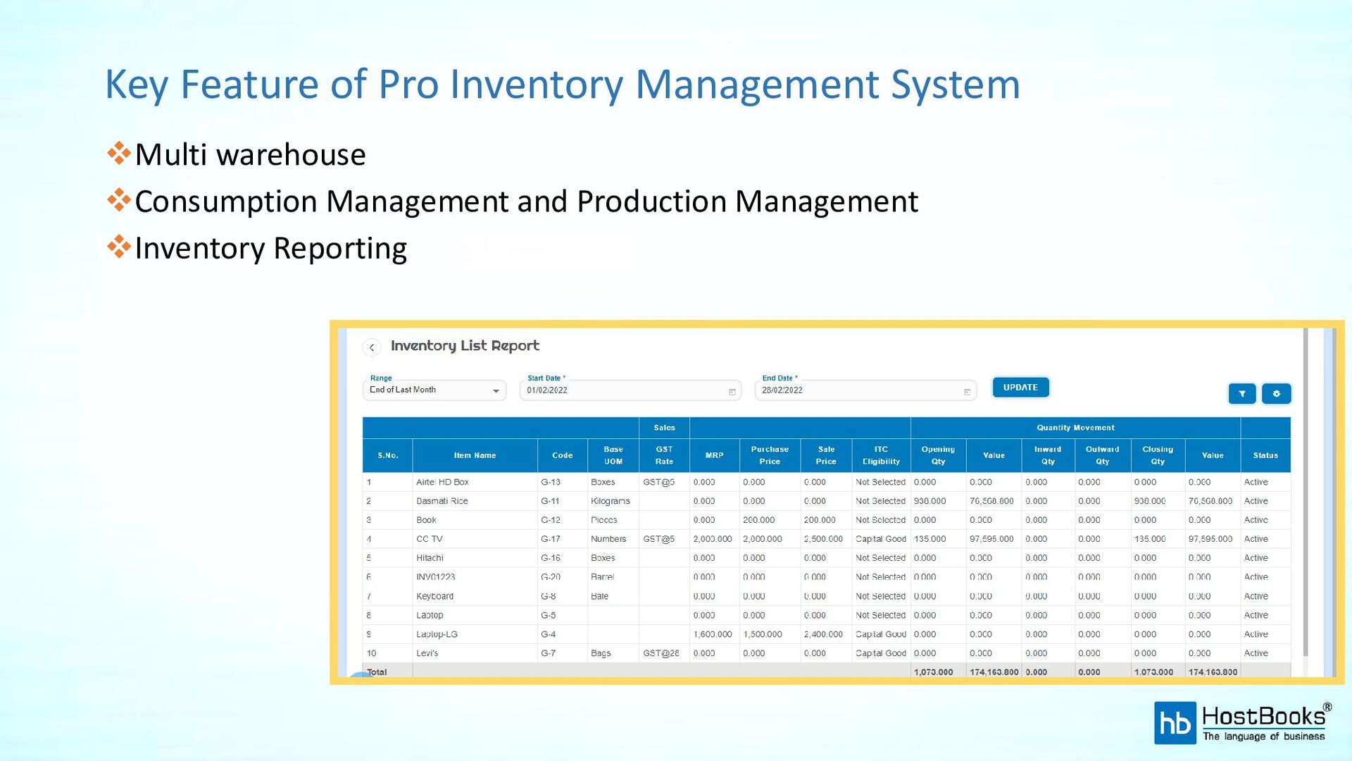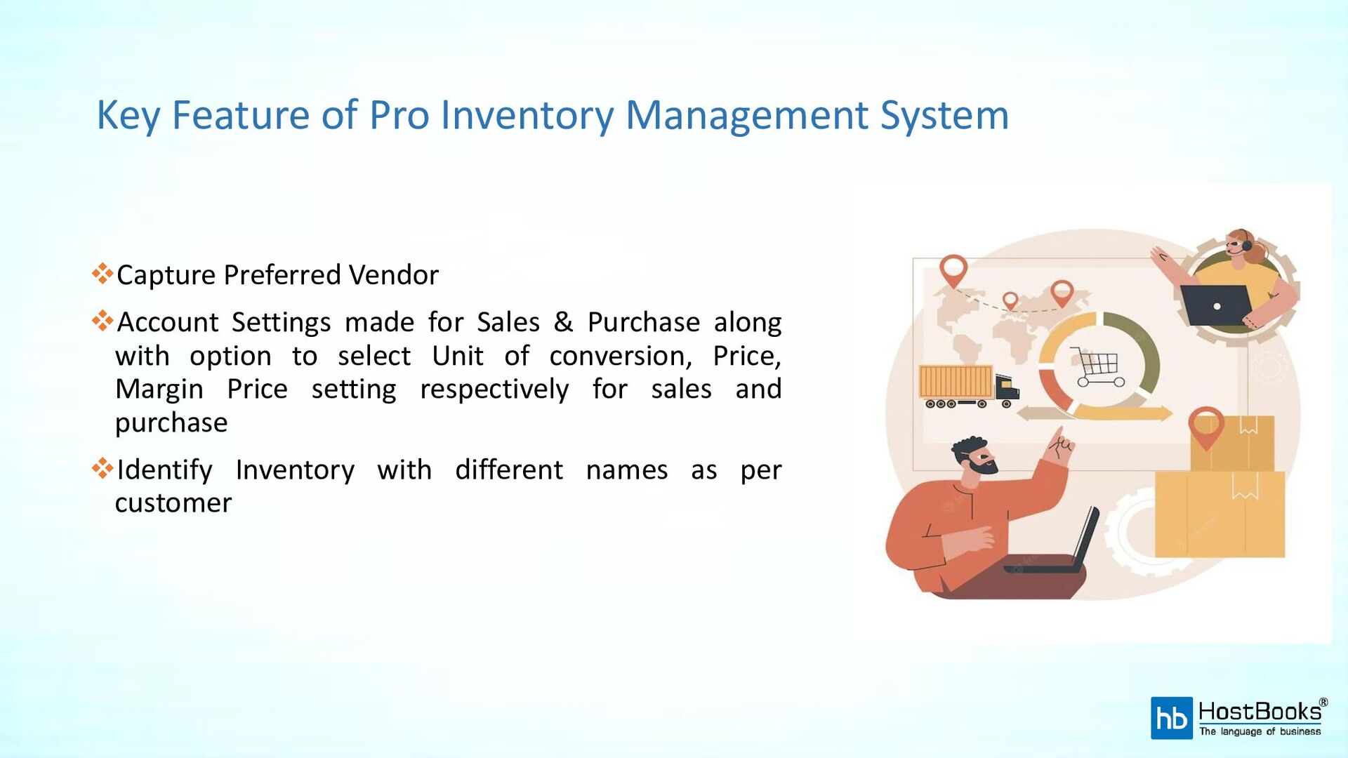 HostBooks is an efficient inventory management system enabling you to track inventory levels, orders, sales, deliveries, and more. Further, it facilitates the industry’s day-to-day work i.e. creating work orders, billing, or creating documents for various requirements.