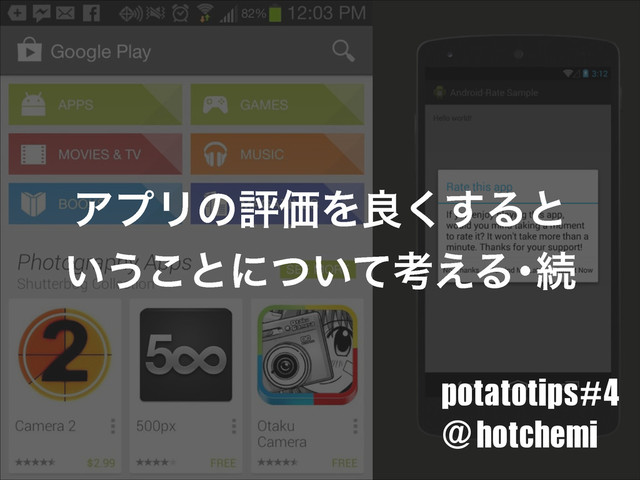 ΞϓϦͷධՁΛྑ͘͢Δͱ ͍͏͜ͱʹ͍ͭͯߟ͑Δŋଓ potatotips#4 @hotchemi