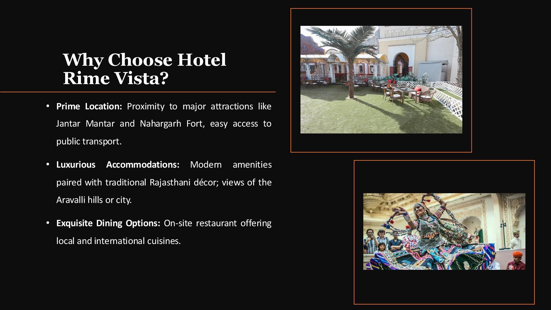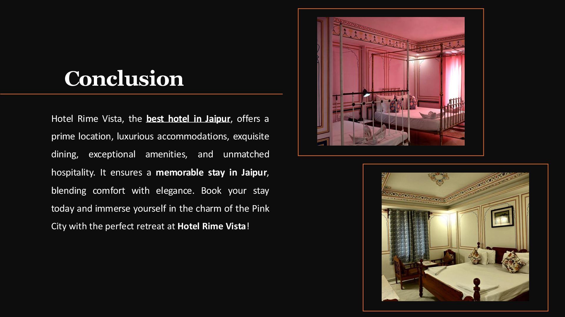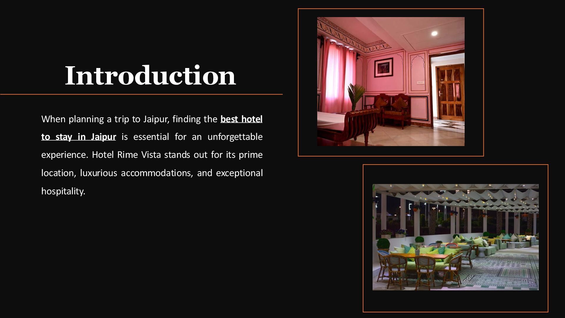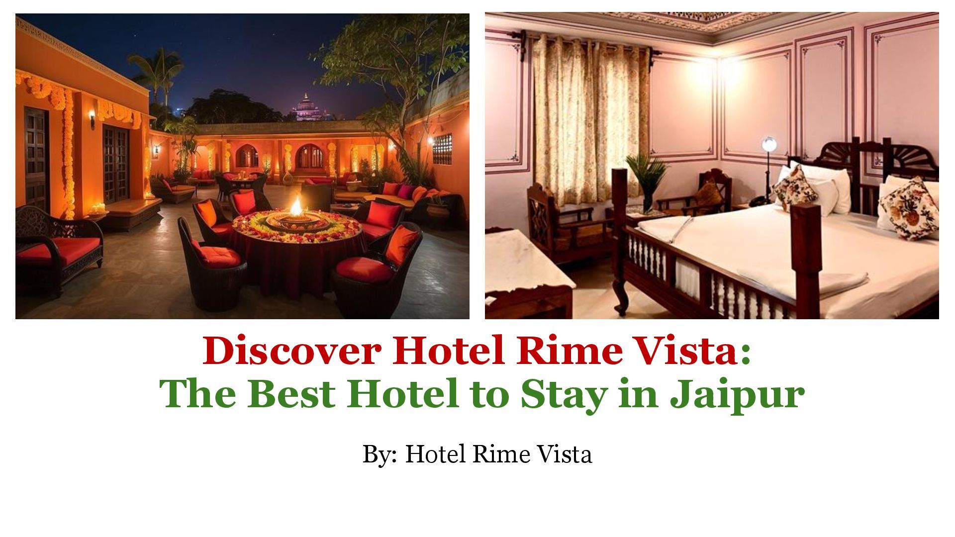 Hotel Rime Vista, the best hotel in Jaipur, offers a prime location, luxurious accommodations, exquisite dining, exceptional amenities, and unmatched hospitality. It ensures a memorable stay in Jaipur, blending comfort with elegance. Book your stay today and immerse yourself in the charm of Pink City with the perfect retreat at Hotel Rime Vista! Explore more @ https://www.hotelrimevista.com/