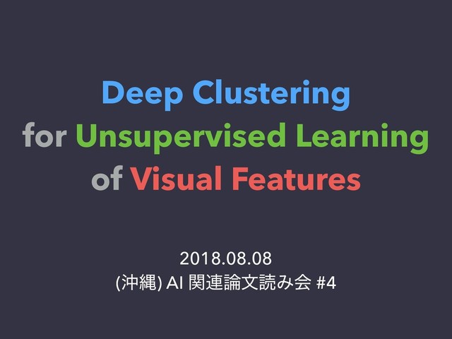 Facebook AI Research による論文「Deep Clustering for Unsupervised Learning of Visual Features」の解説資料 https://arxiv.org/abs/1807.05520