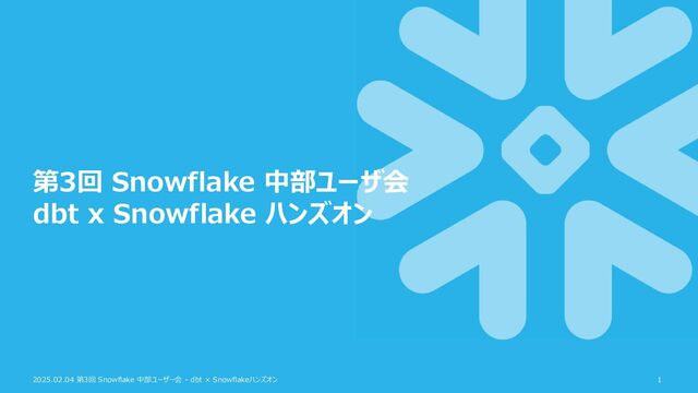 2025年2月4日(火) 開催のイベント「第3回 Snowflake 中部ユーザー会 - dbt × Snowflakeハンズオン」の資料です。 https://techplay.jp/event/970242