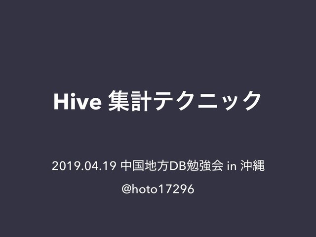 Hive ूܭςΫχοΫ 2019.04.19 தࠃํDBษڧձ in ԭೄ @hoto17296