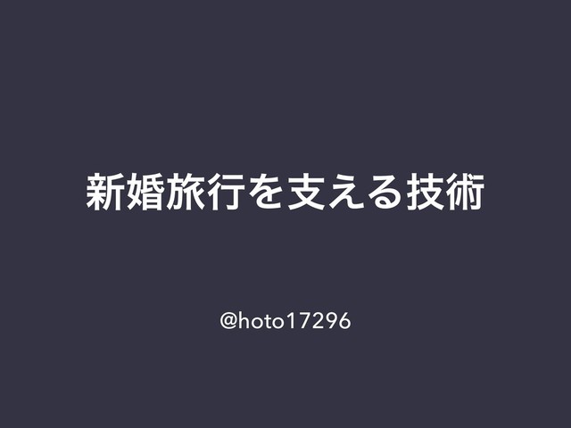 新婚旅行を支える技術 / Technologies supporting honeymoon
