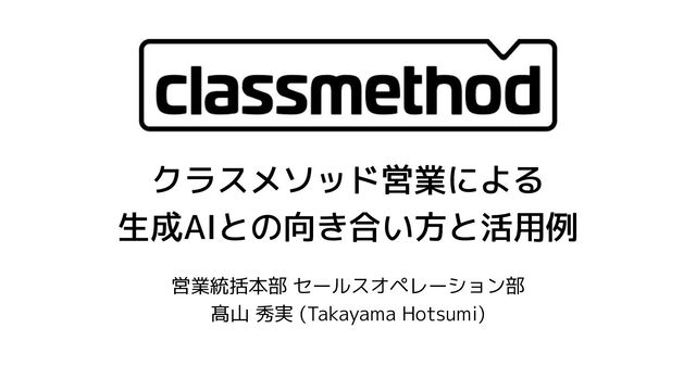クラスメソッド営業による 生成AIとの向き合い方と活用例 営業統括本部 セールスオペレーション部 髙山 秀実 (Takayama Hotsumi)