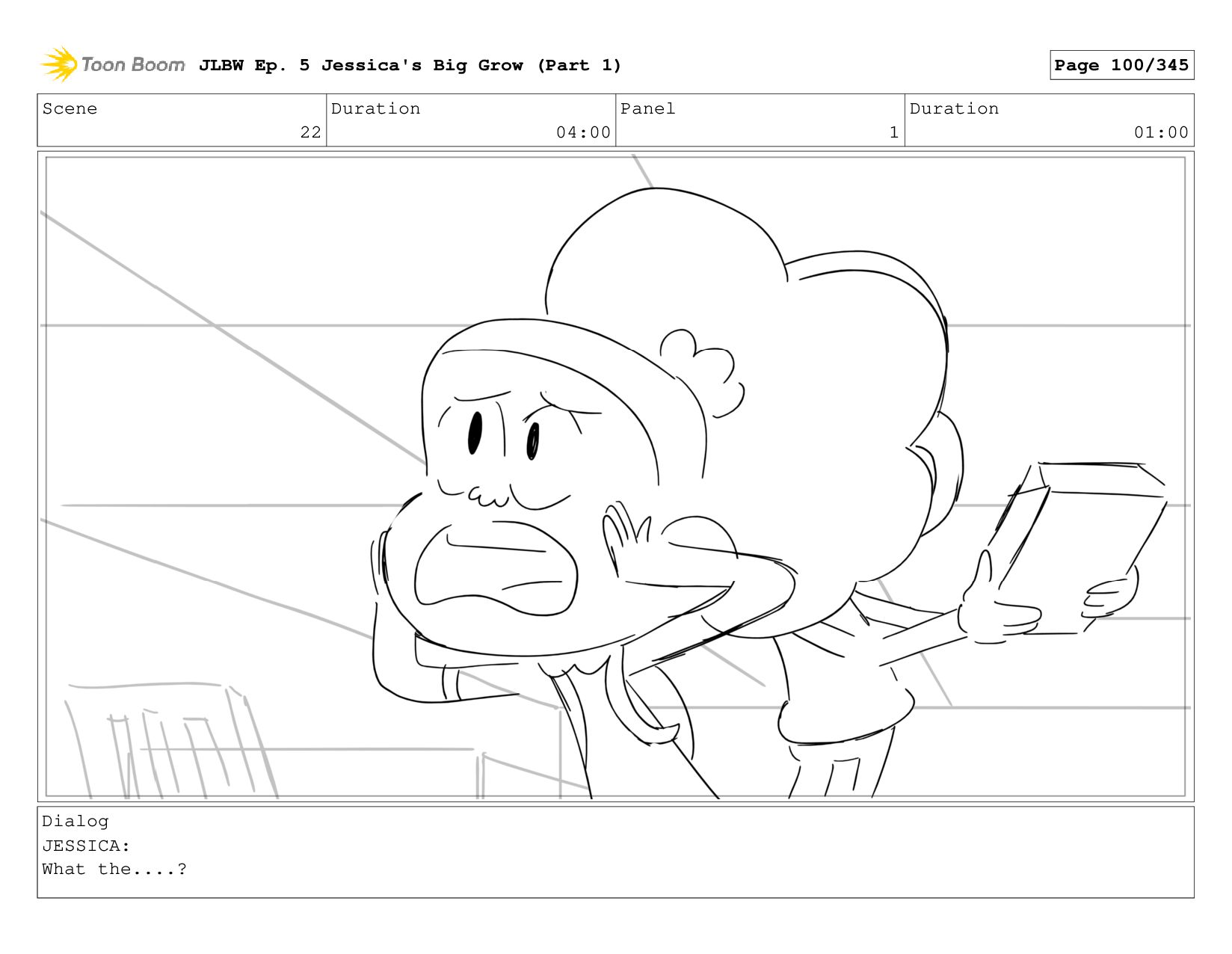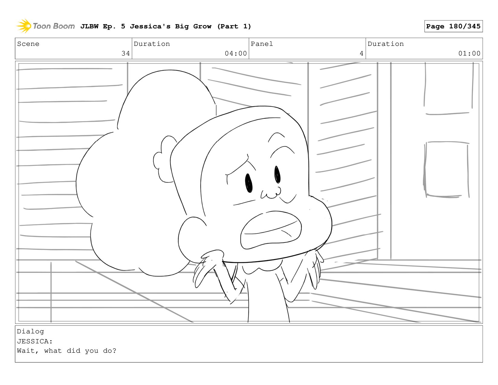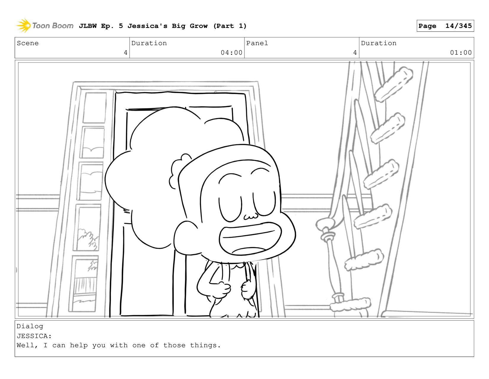 Scene 4 Duration 04:00 Panel 1 Duration 01:00 Dialog JESSICA: