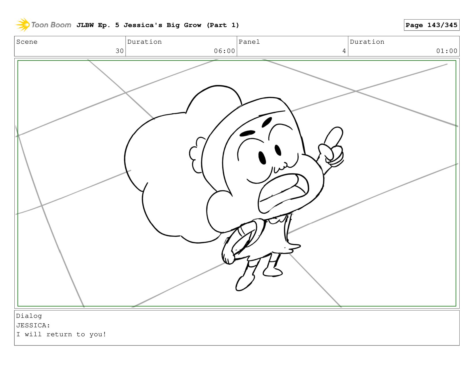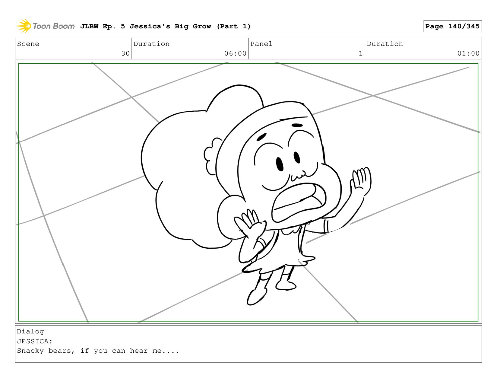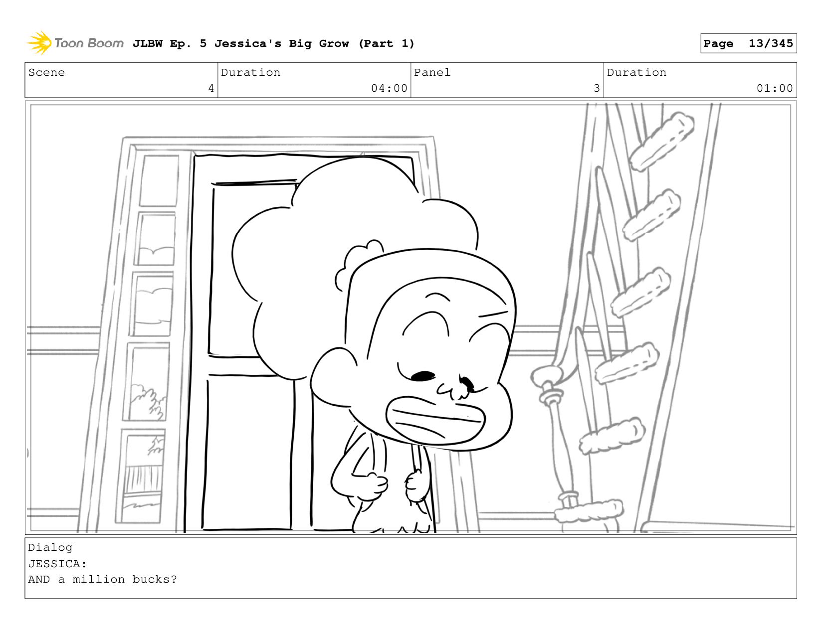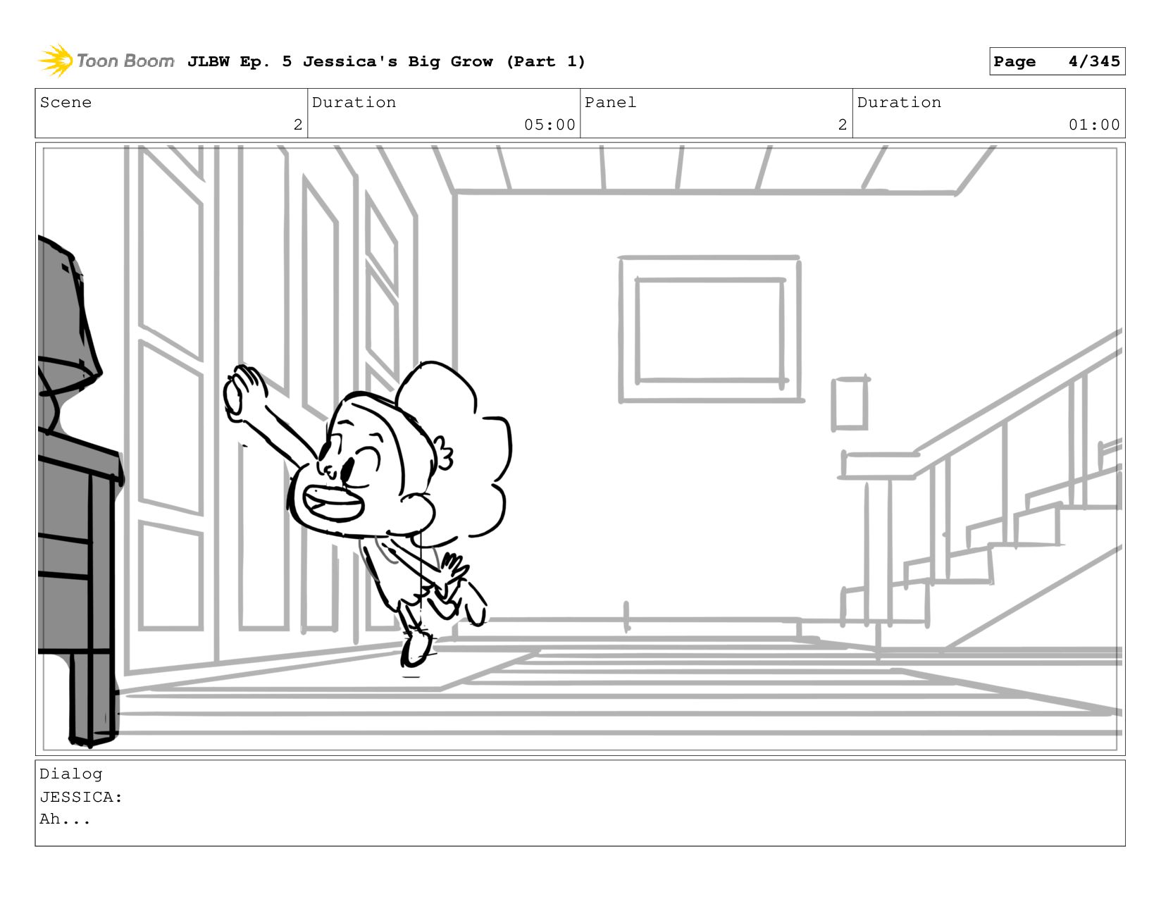 Scene 4 Duration 04:00 Panel 1 Duration 01:00 Dialog JESSICA: