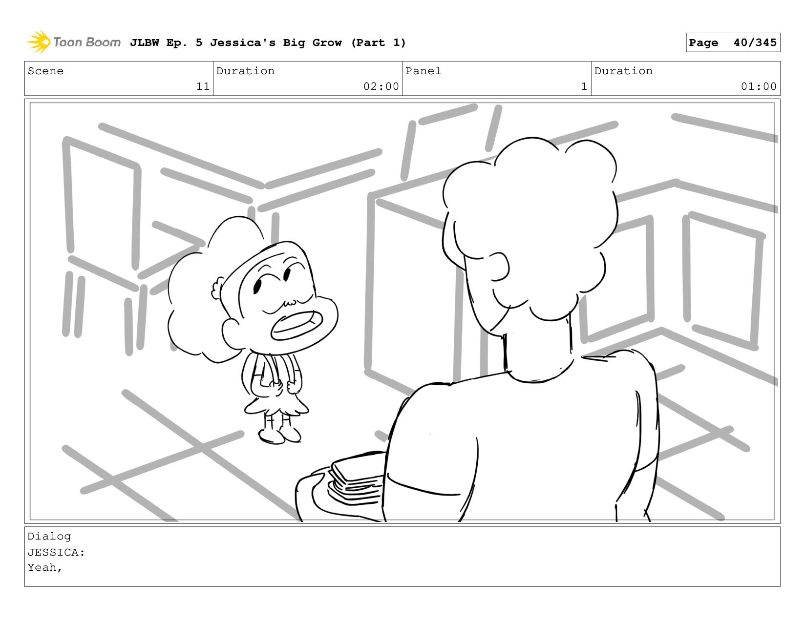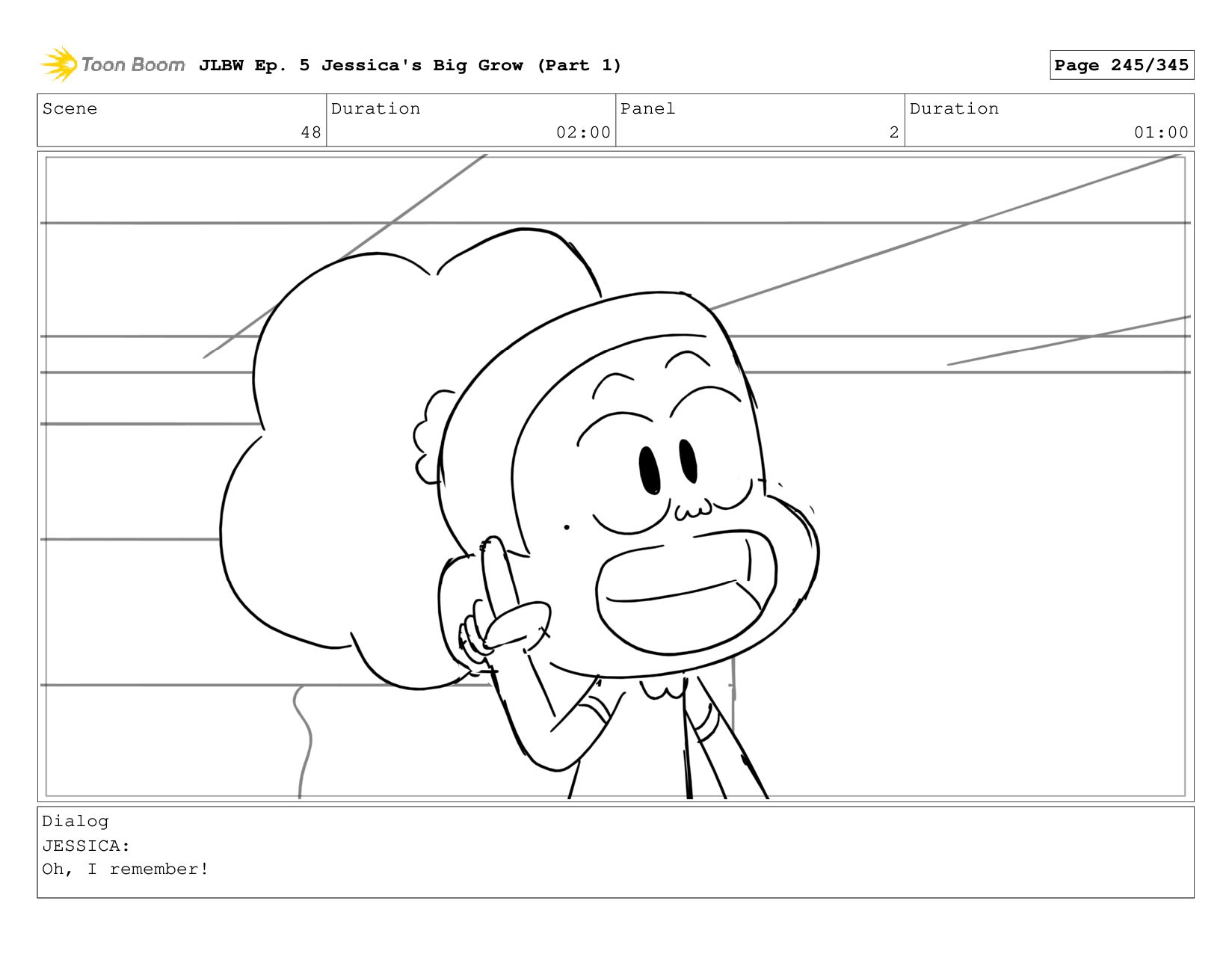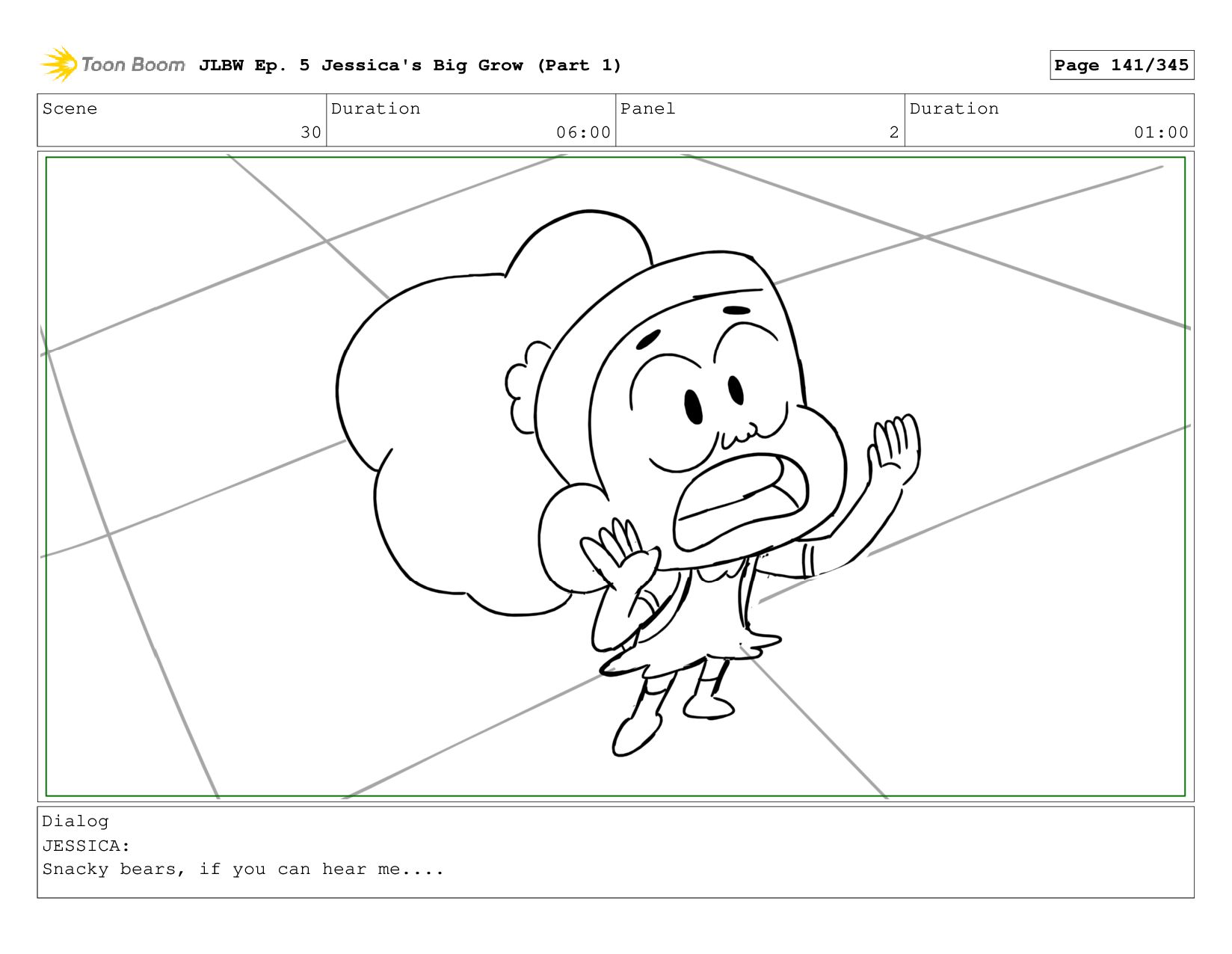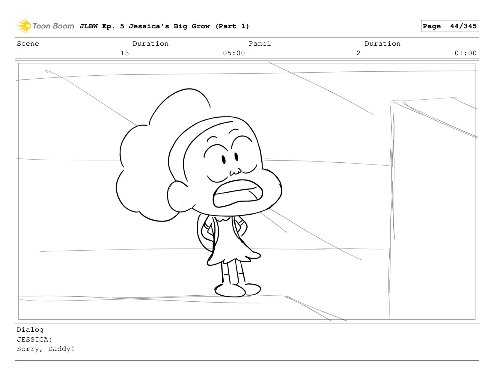 Scene 2 Duration 05:00 Panel 2 Duration 01:00 Dialog JESSICA: