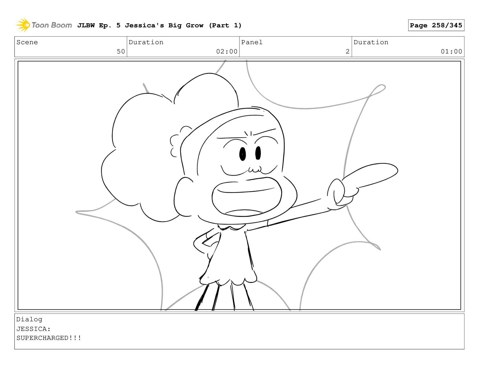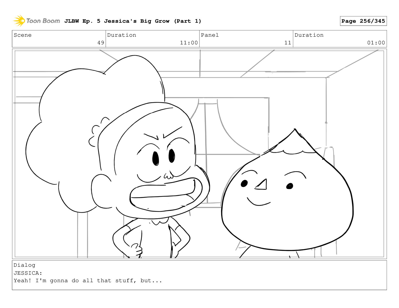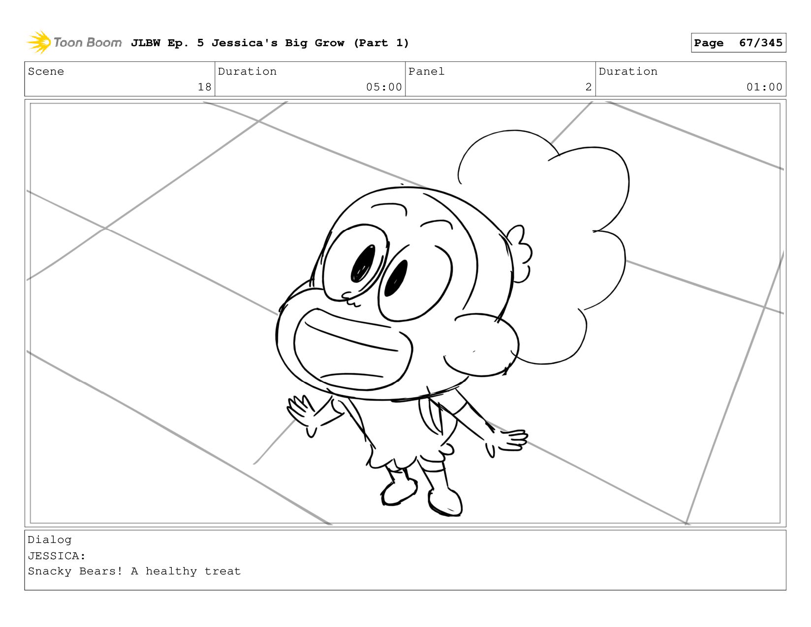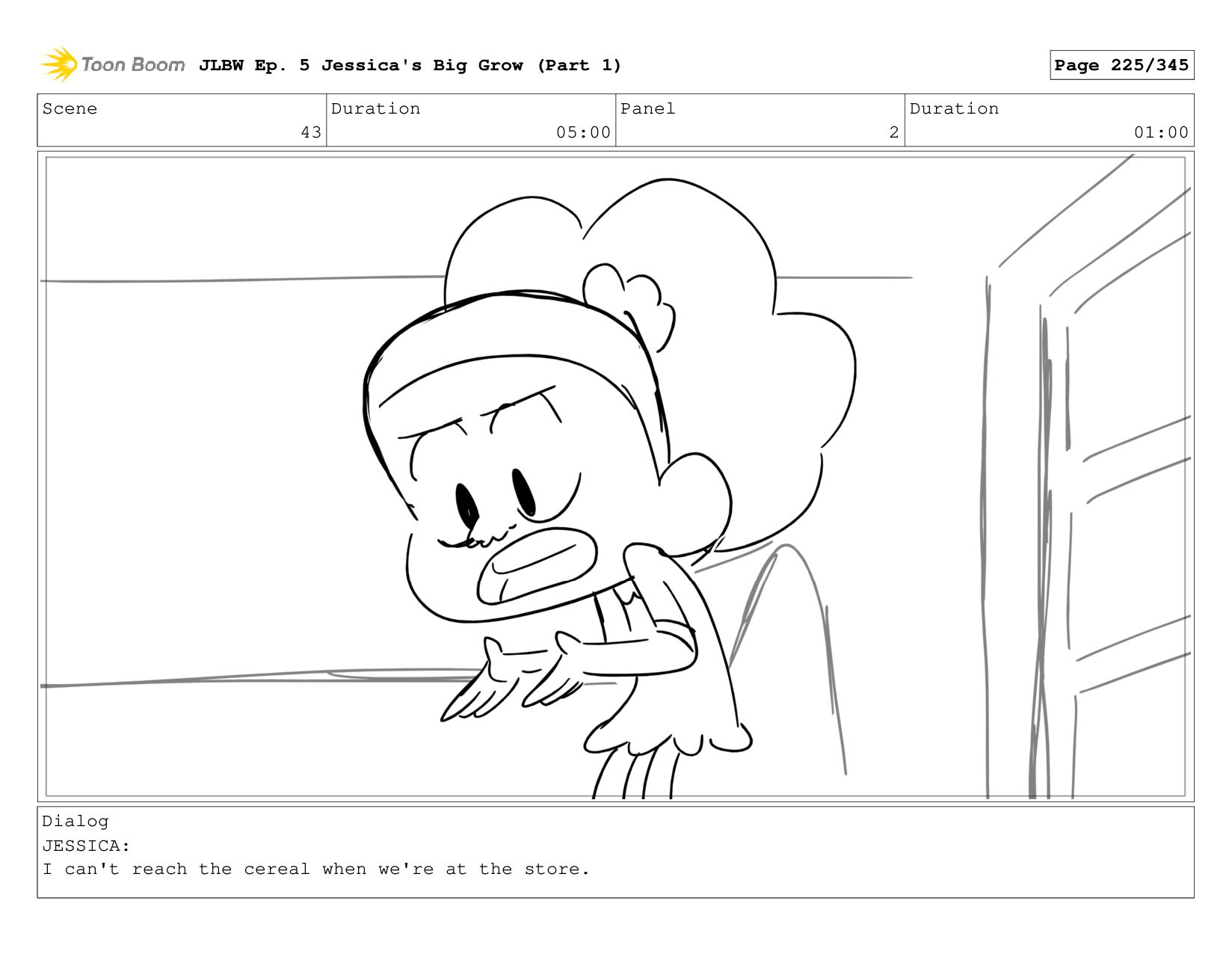 Scene 2 Duration 05:00 Panel 2 Duration 01:00 Dialog JESSICA: