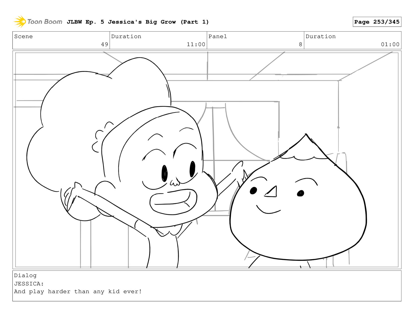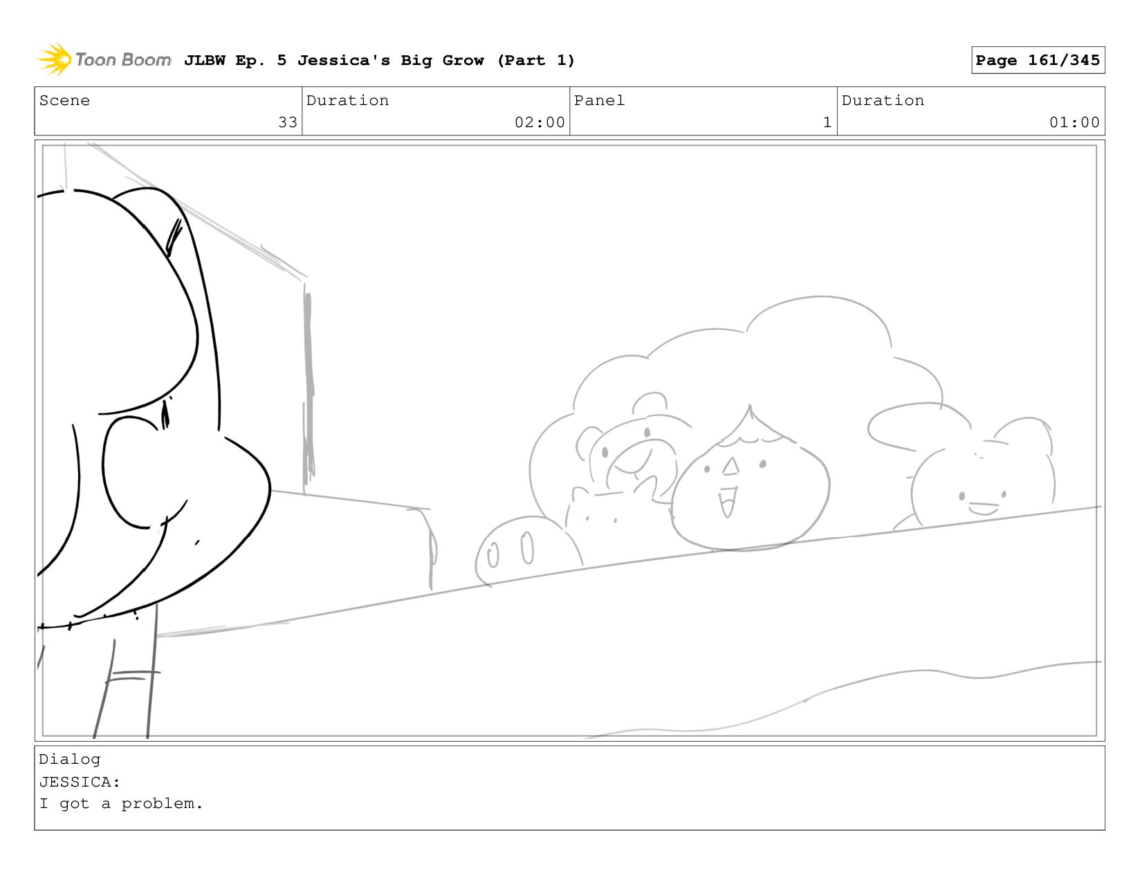 Scene 55 Duration 05:00 Panel 4 Duration 01:00 Dialog JESSICA: