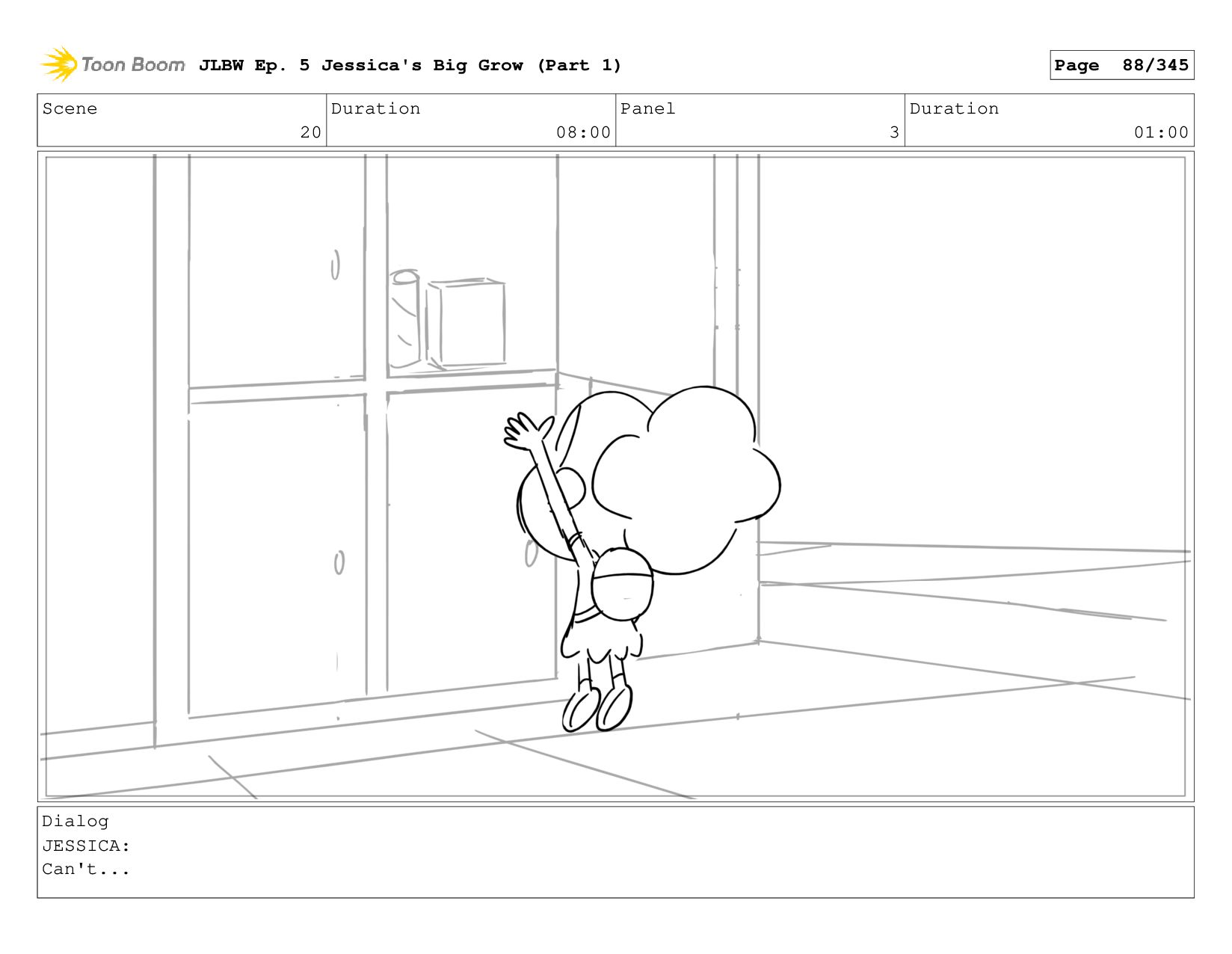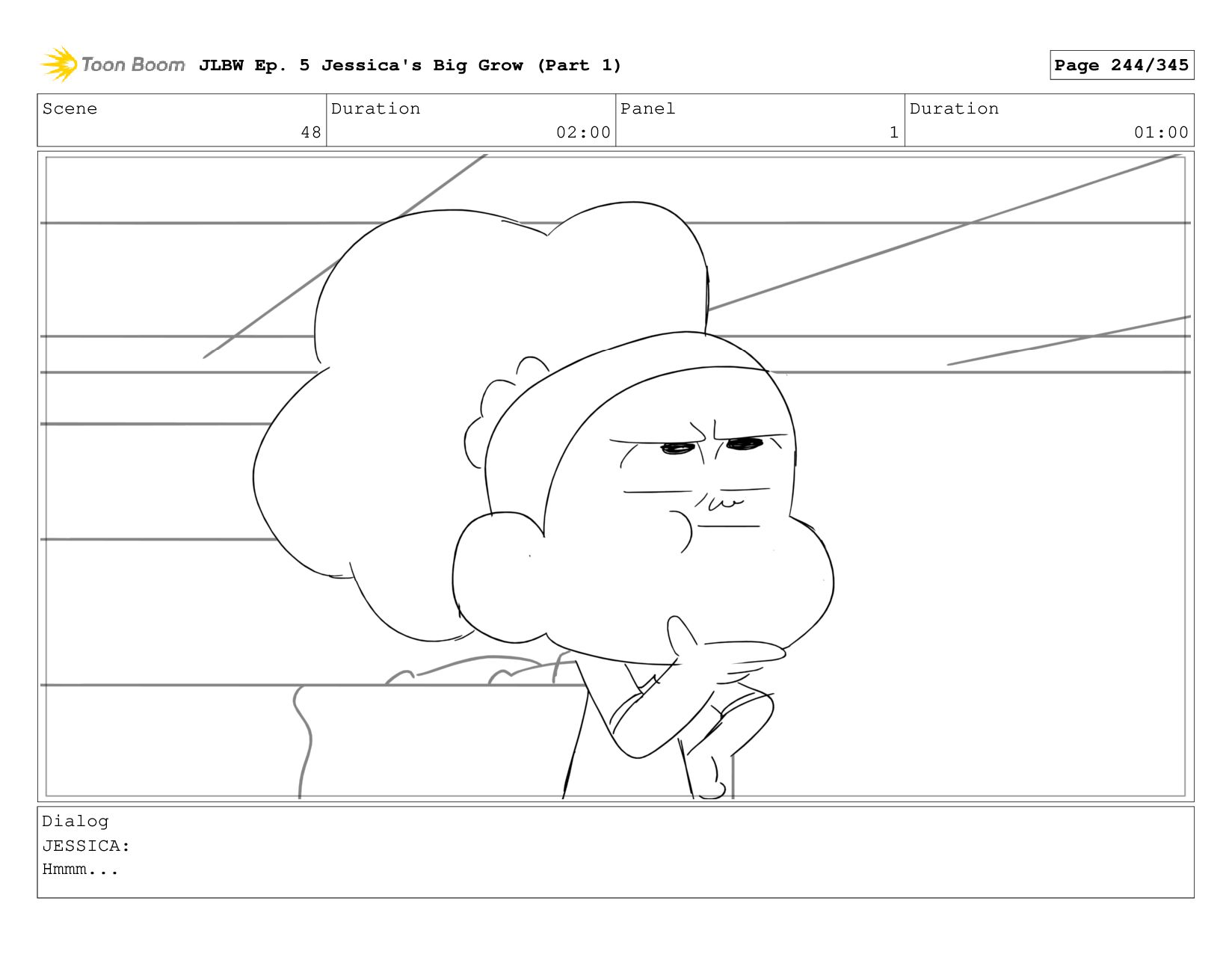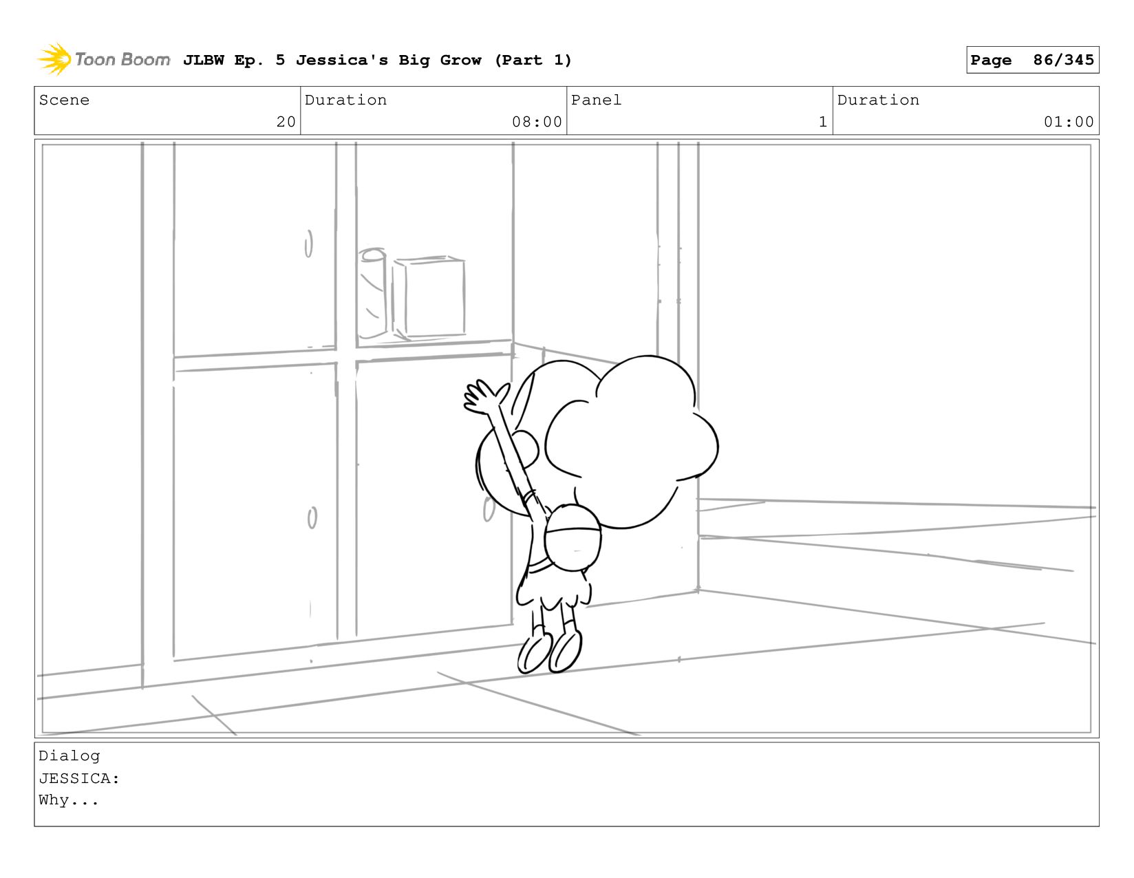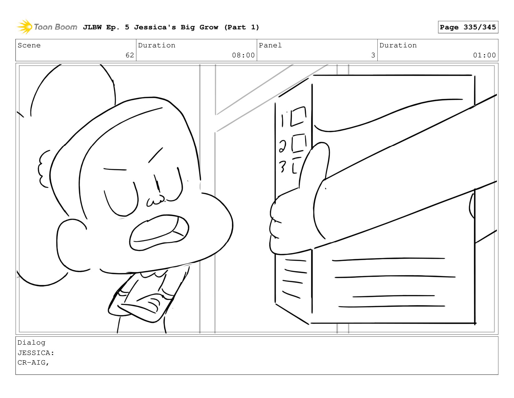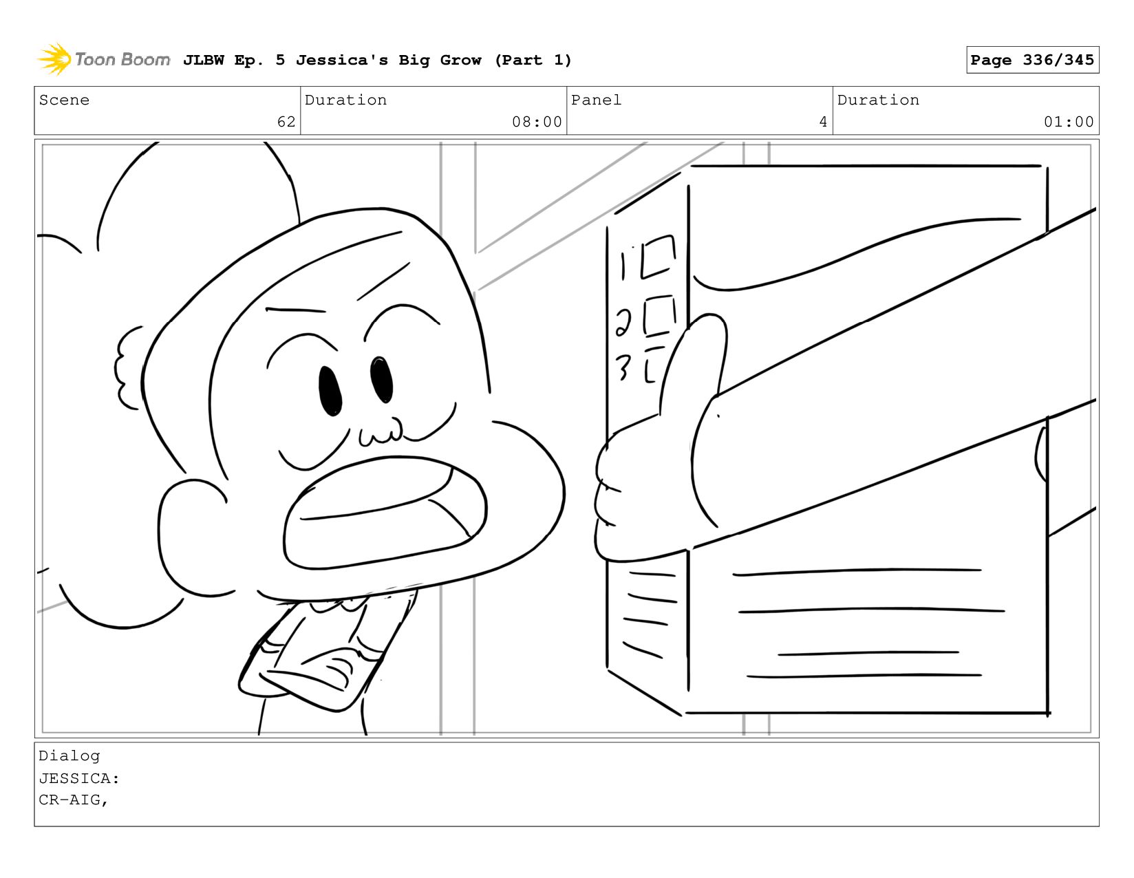 Scene 62 Duration 08:00 Panel 4 Duration 01:00 Dialog JESSICA: